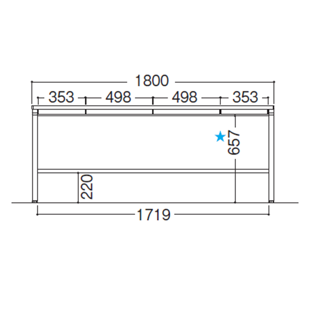 *引き出しなしのタイプで画像の★の寸法は695mmです。