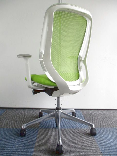 【2022年製!】前傾チルト機能付き!オカムラ製品で最も人気を集める高機能メッシュチェア! ■オカムラ/シルフィ(Sylphy)/ライムグリーン 肘付き ハイバック 背面メッシュ ■可動肘 ■ハンガー付き