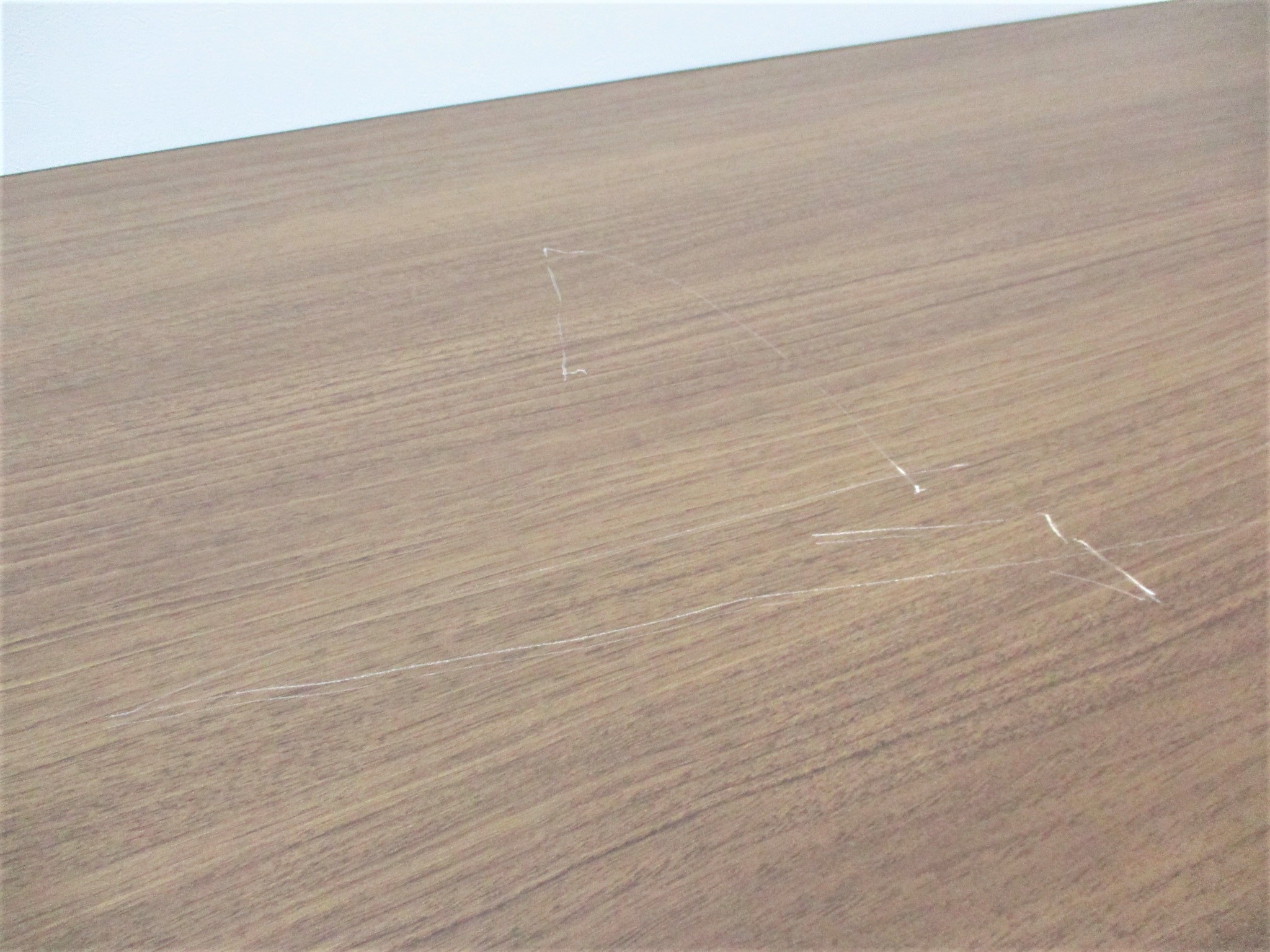 - 目立つ箇所あり傷・凹みが多数、深い傷・凹みが一部ある。(例、天板、幕板、棚板、サイド部分、脚部等にある。)