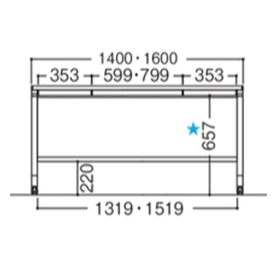 *引き出しなしのタイプで画像の★の寸法は695mmです。