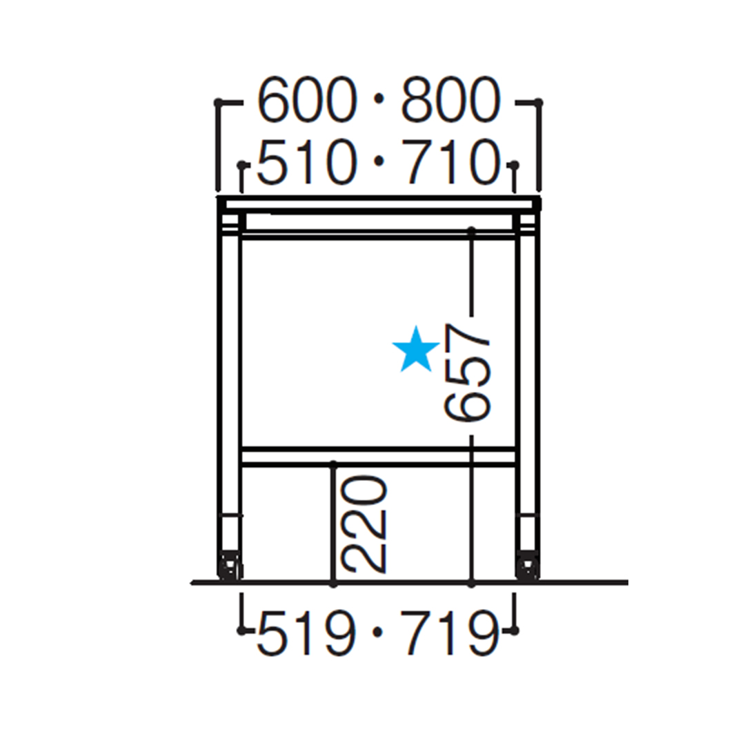 *引き出しなしのタイプで画像の★の寸法は695mmです。