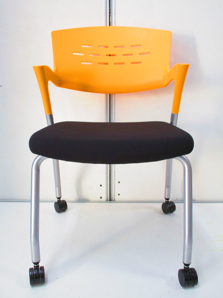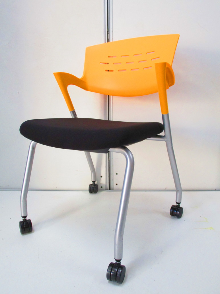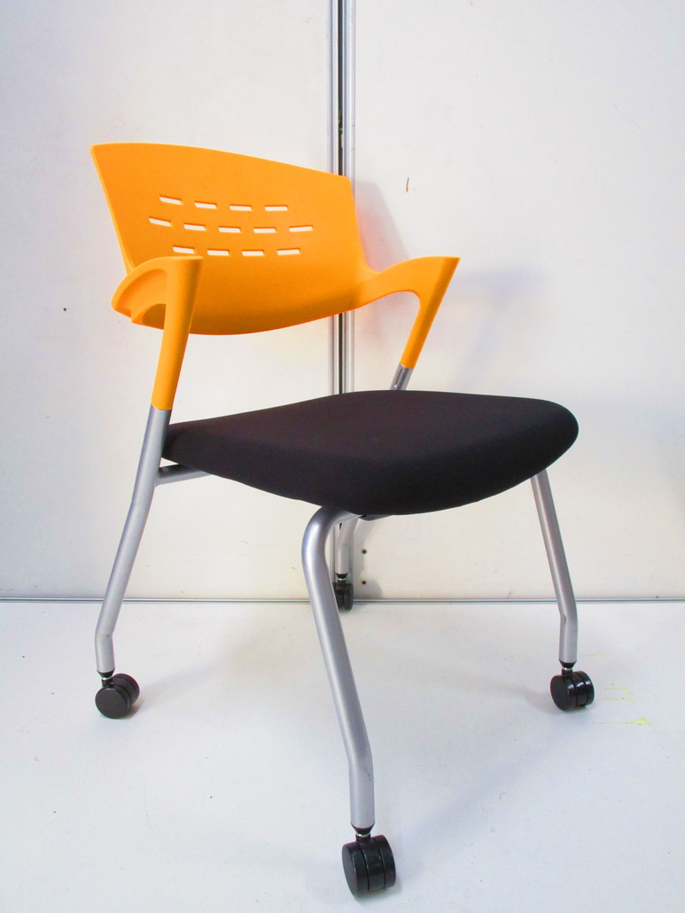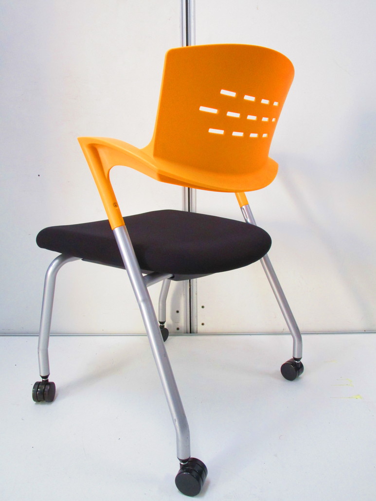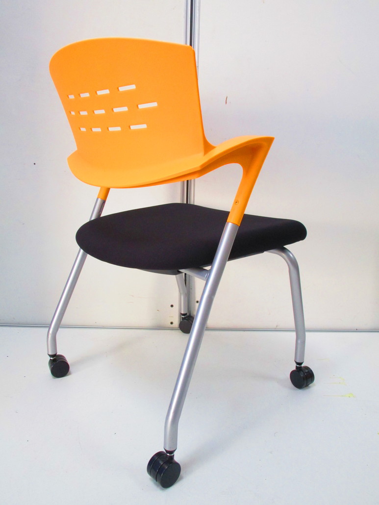3脚の為お安くご提供!明るいカラーが印象的なミーティングチェア!重ねられるスタッキングタイプです- 埼玉本店