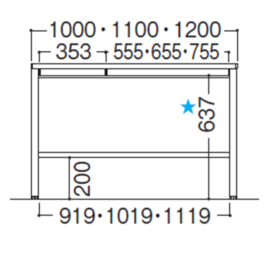 *引き出しなしのタイプで画像の★の寸法は675mmです。