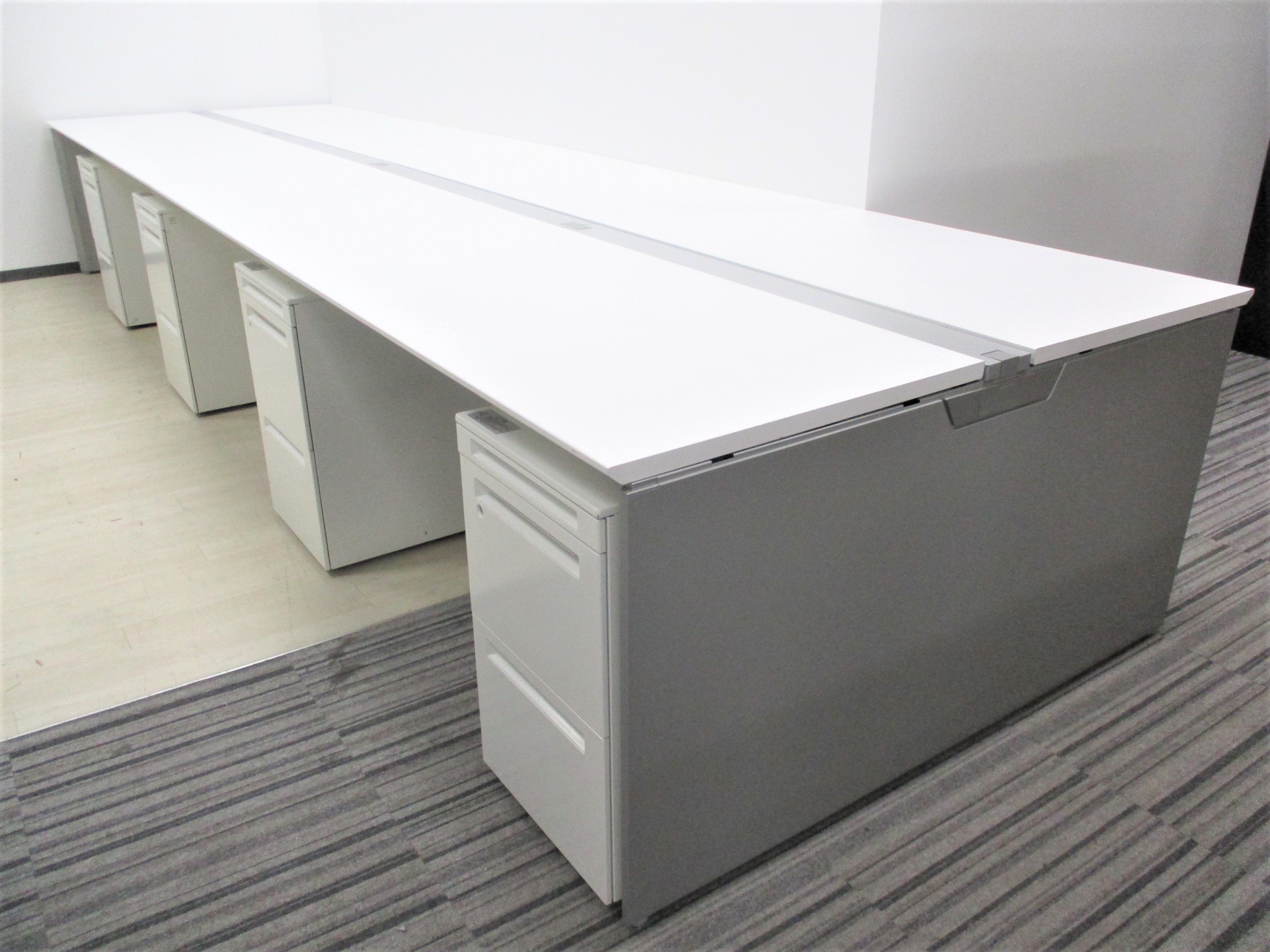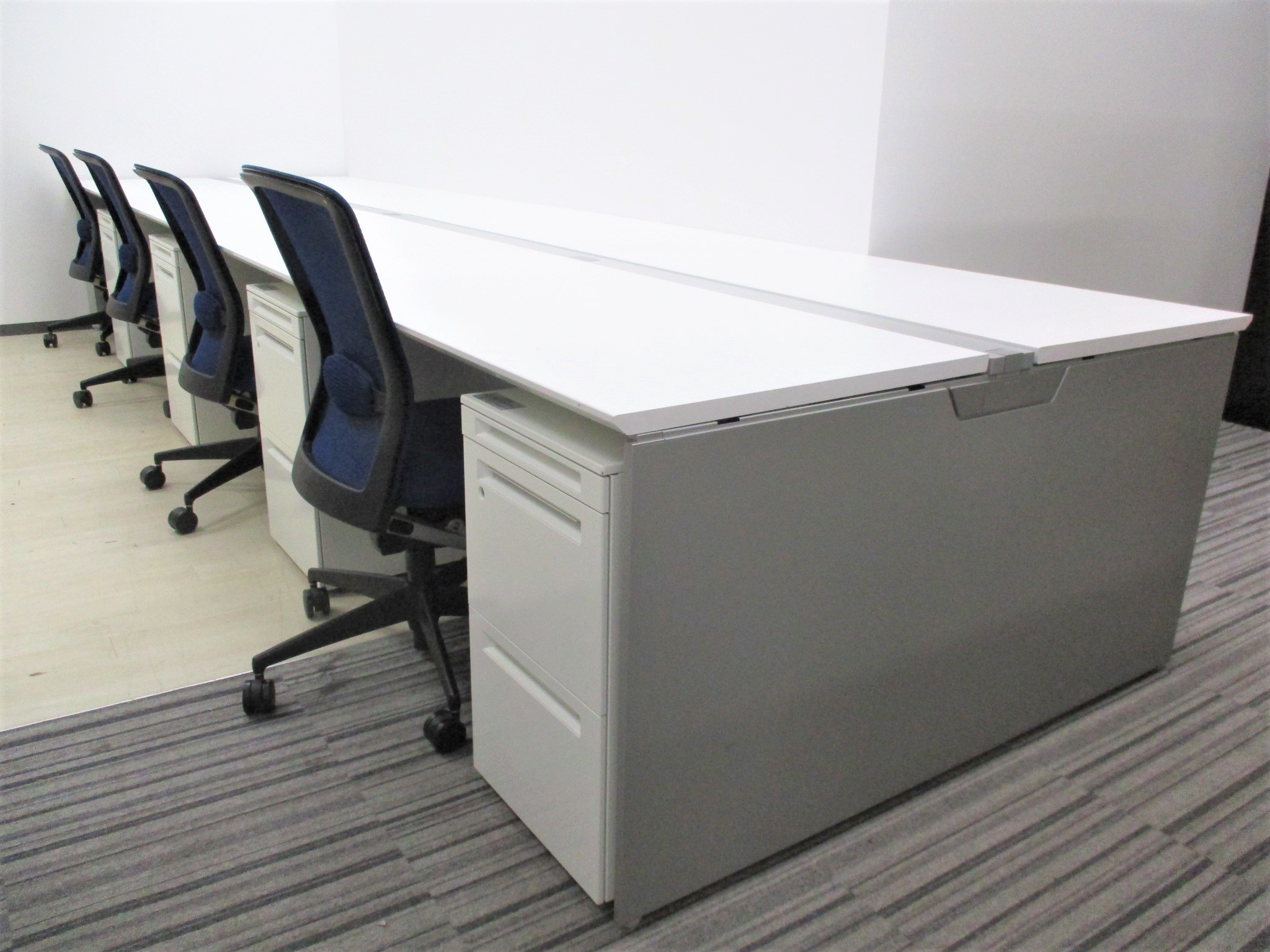 【見た目がおしゃれなフリーアドレスデスク】幅4800㎜ 奥行1400㎜ 高さ720㎜ オカムラ/プロユニットフリーウェイ/天板:ホワイト/脚:ホワイト 中古家具