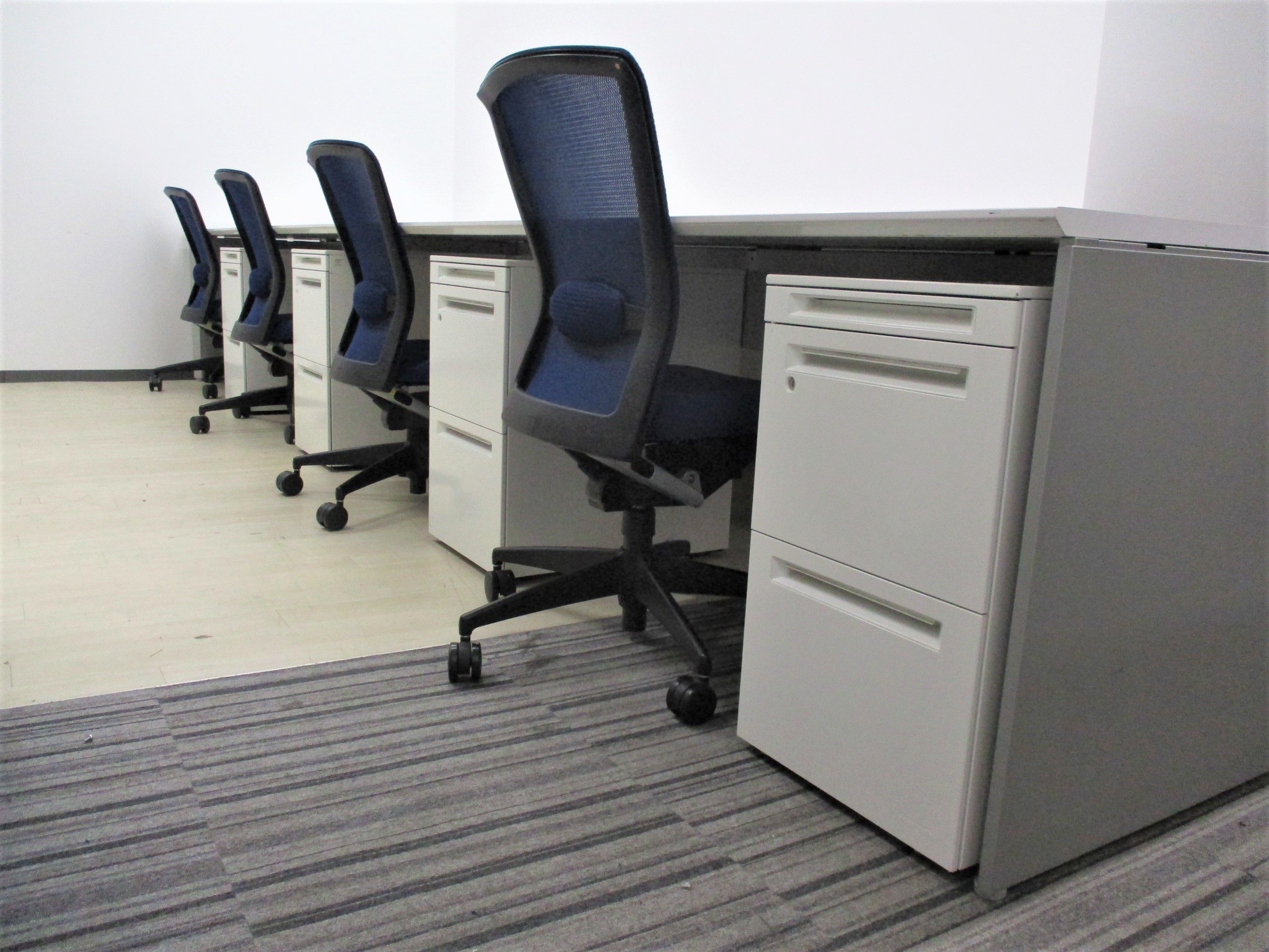 今、主流になりつつあるフリーアドレスデスクも在庫がございます。使用人数にあわせた最適なサイズのデスクをご提案いたします。