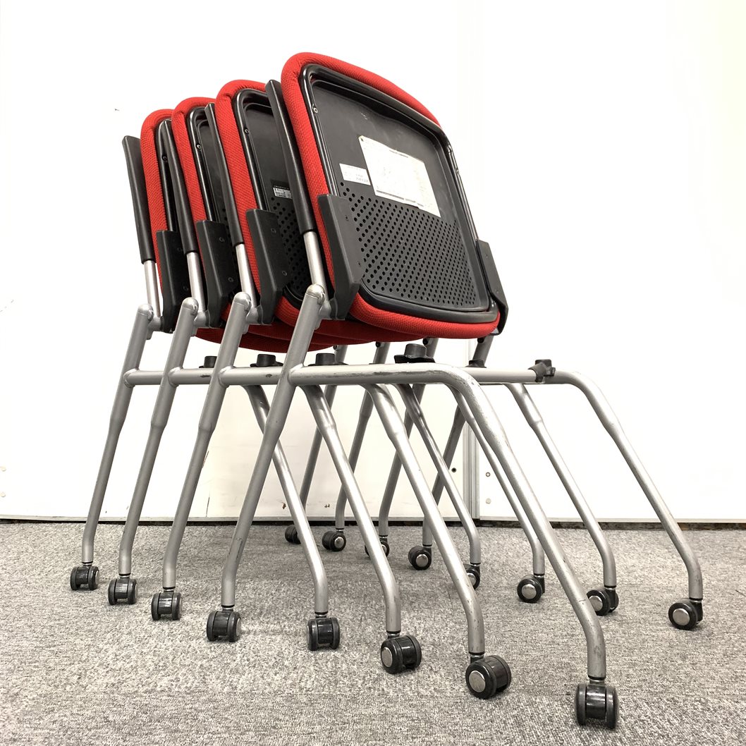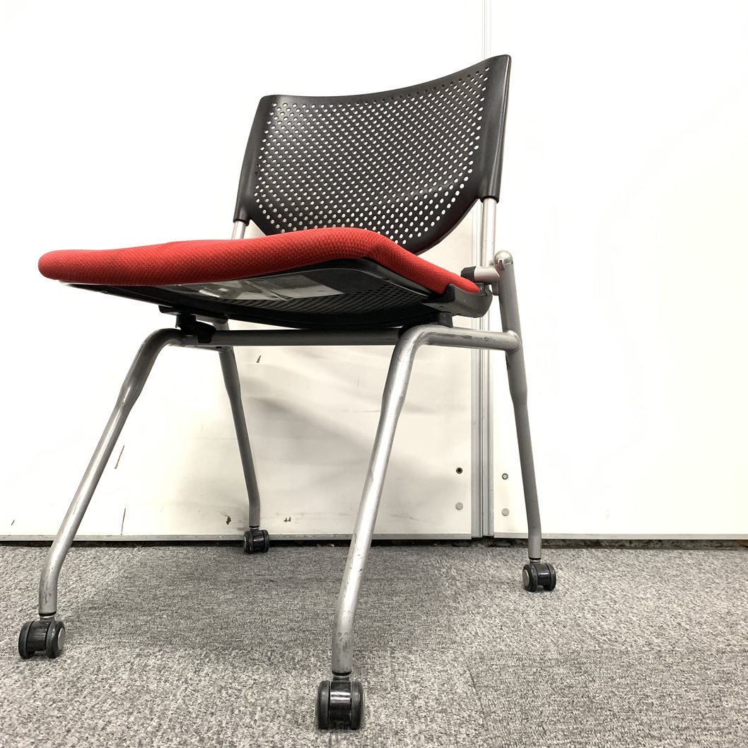 【お買い得!】【4脚セット!】【大量入荷!】オカムラ|プロスタック ブラック×レッド!- 神戸・三宮店