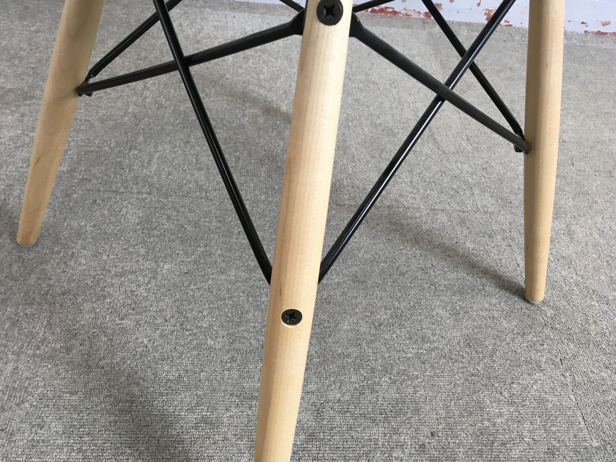 ハーマンミラーのサイドシェルチェア、ベースはドゥエルレッグになります。俗に言う『DSW』、ミッドセンチュリーを代表するイームズの名作です