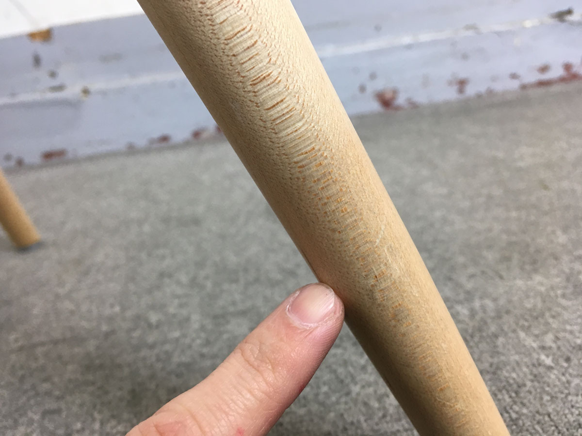 - かなり強い濃い黄ばみ・変色が商品全体にある。(例、座面・背もたれ、脚部等にある。)