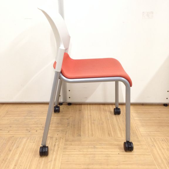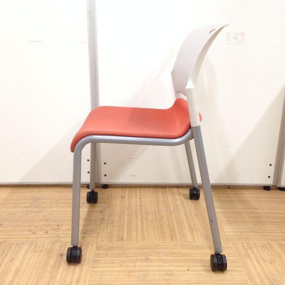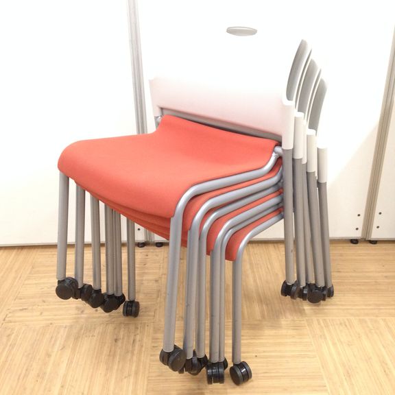 【キャスター付きでらくらく移動可能!】レッド色でオフィスを明るく!重ねて収納可能なチェア!- 名古屋本店