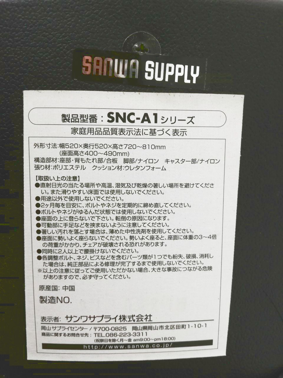【中古】 SNC-A1 肘無ローバックチェア 250118