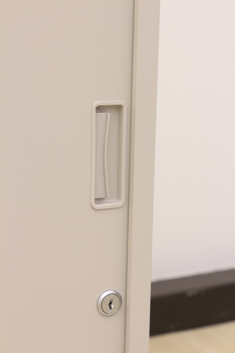 引き戸書庫にはシリンダー錠付きでセキュリティ面もばっちり