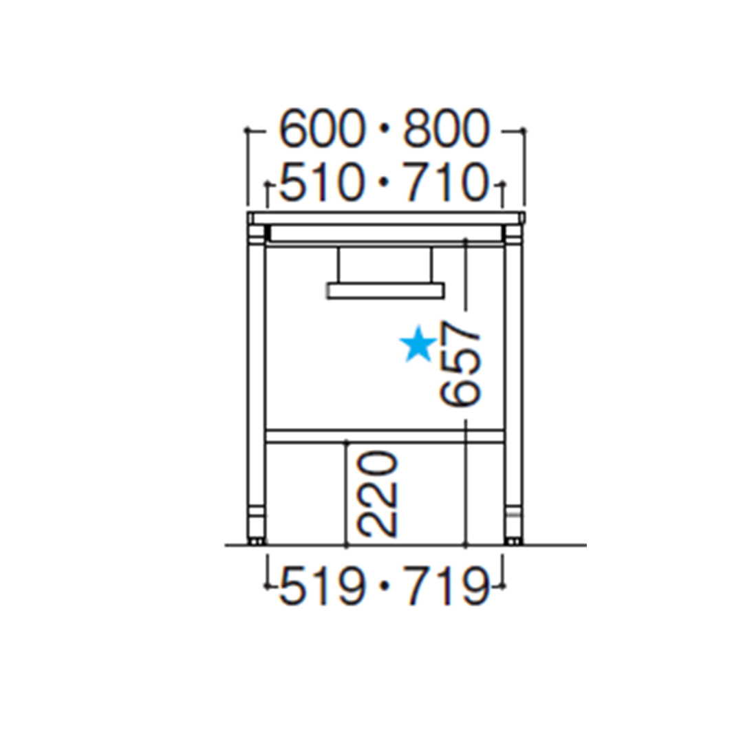 *引き出しなしのタイプで画像の★の寸法は695mmです。