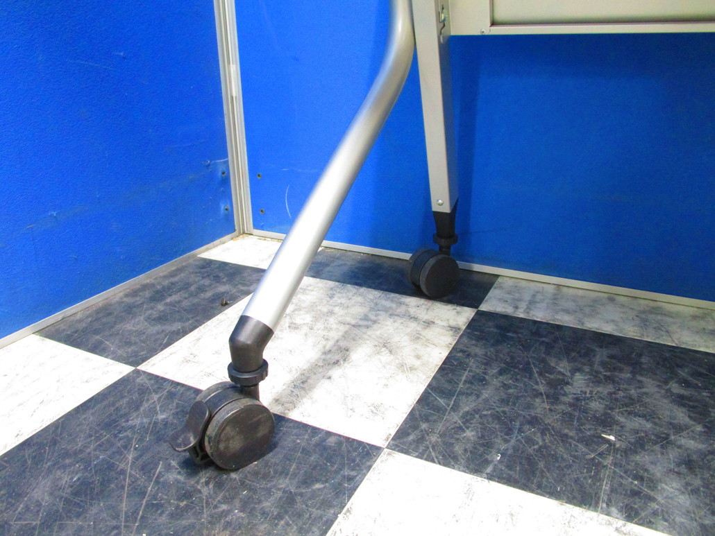 - 一部不具合あり天板歪み、アジャスター無し、キャスター使用不可ようなそのテーブルの本来の効用を果たすための機能以外の一部が使用不可な状態。(例、キャスターロッ ク機能使用不可、棚板無し等がある。)
