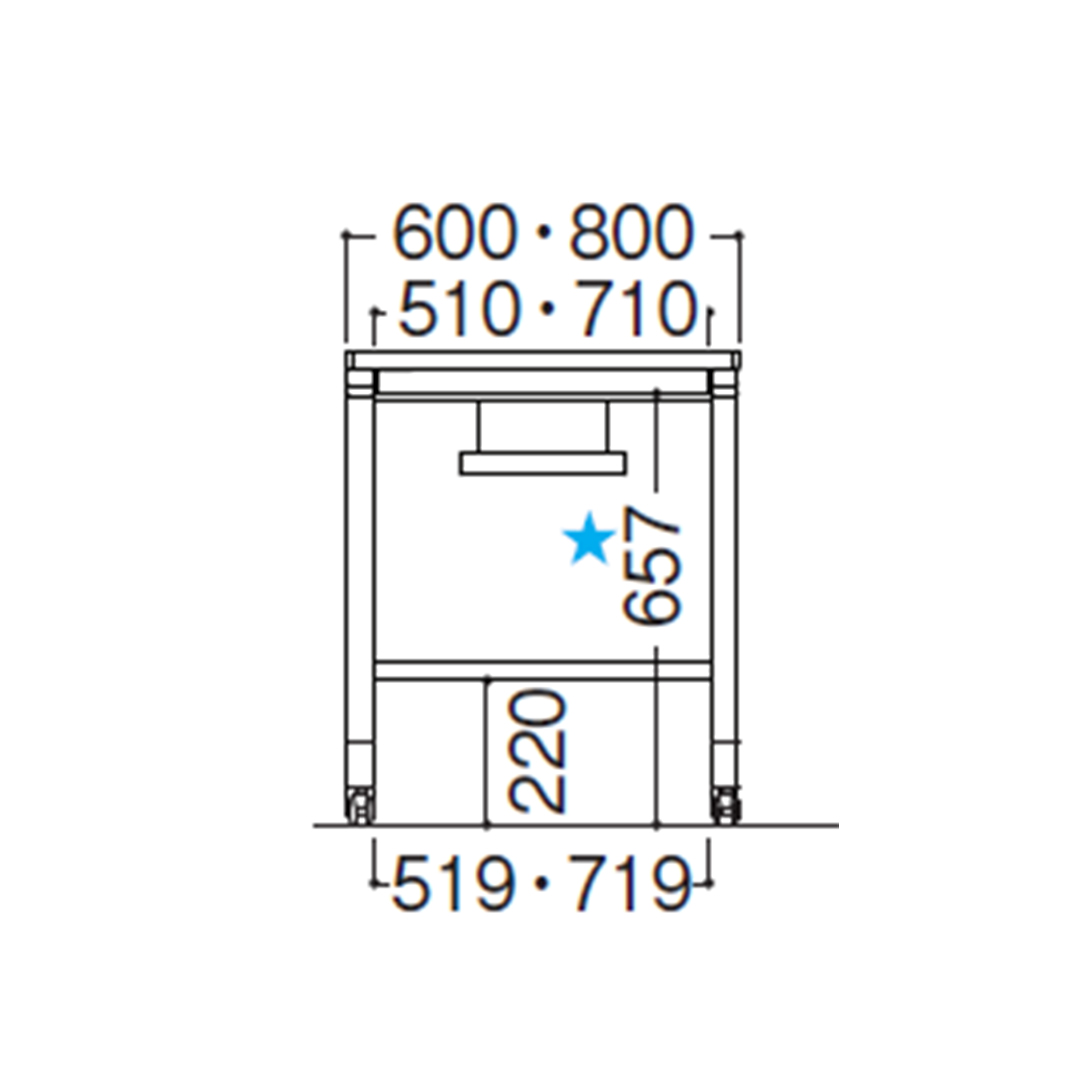 *引き出しなしのタイプで画像の★の寸法は695mmです。