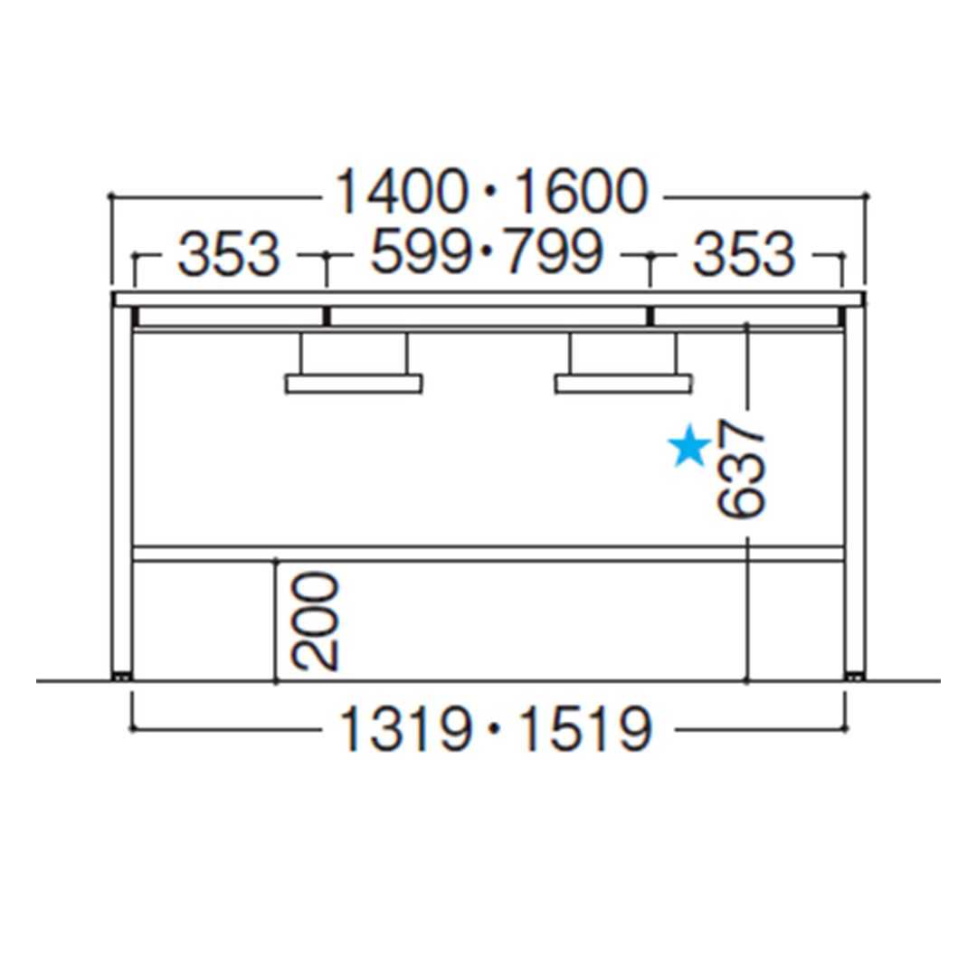 *センター引き出し3個付け、コード受け2個付けタイプ
