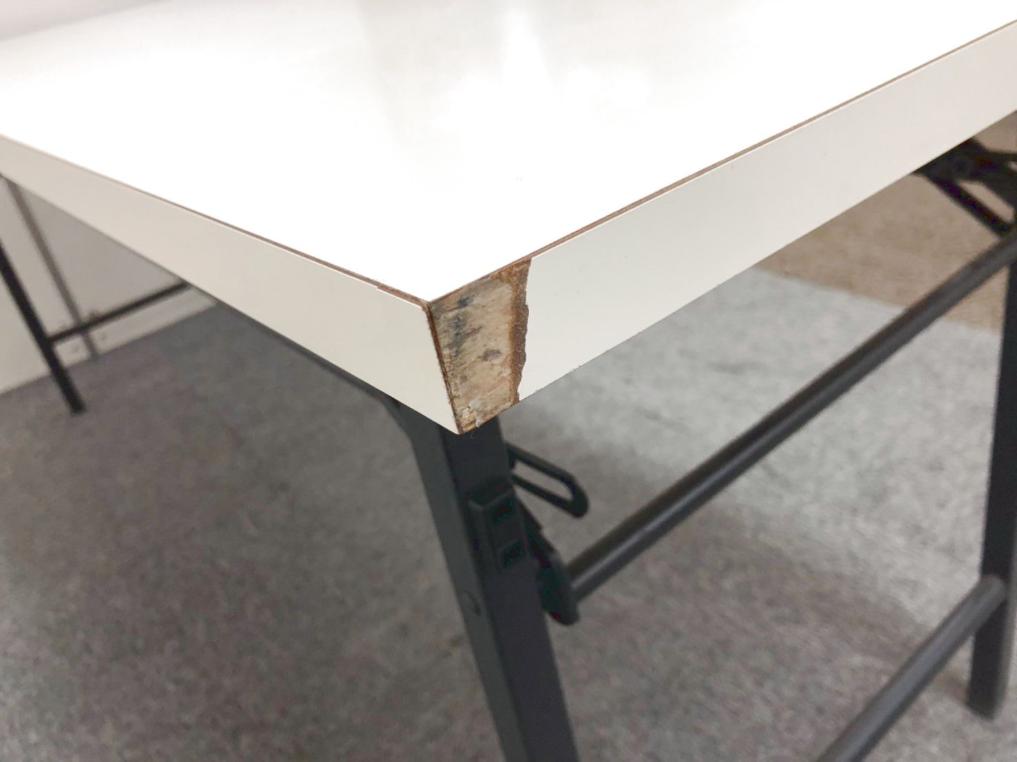- 壊れている天板歪み、アジャスター無し、キャスター使用不可のようにそのテーブルの本来の効用を果たすための機能に不具合がある。