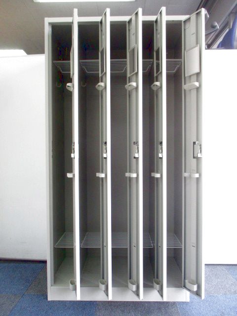縦型の5人用ロッカーなので1つ1つの幅が狭くなっております!
