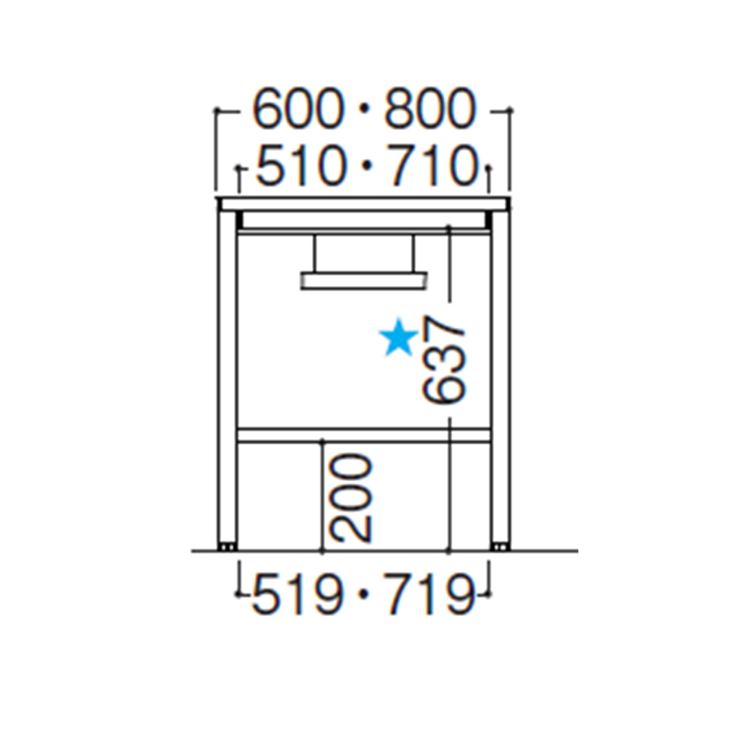 *引き出しなしのタイプで画像の★の寸法は675mmです。