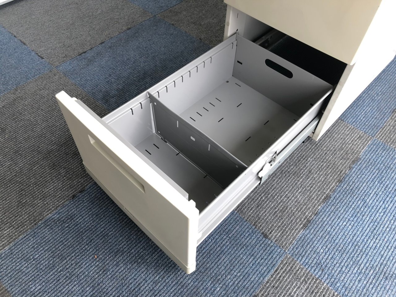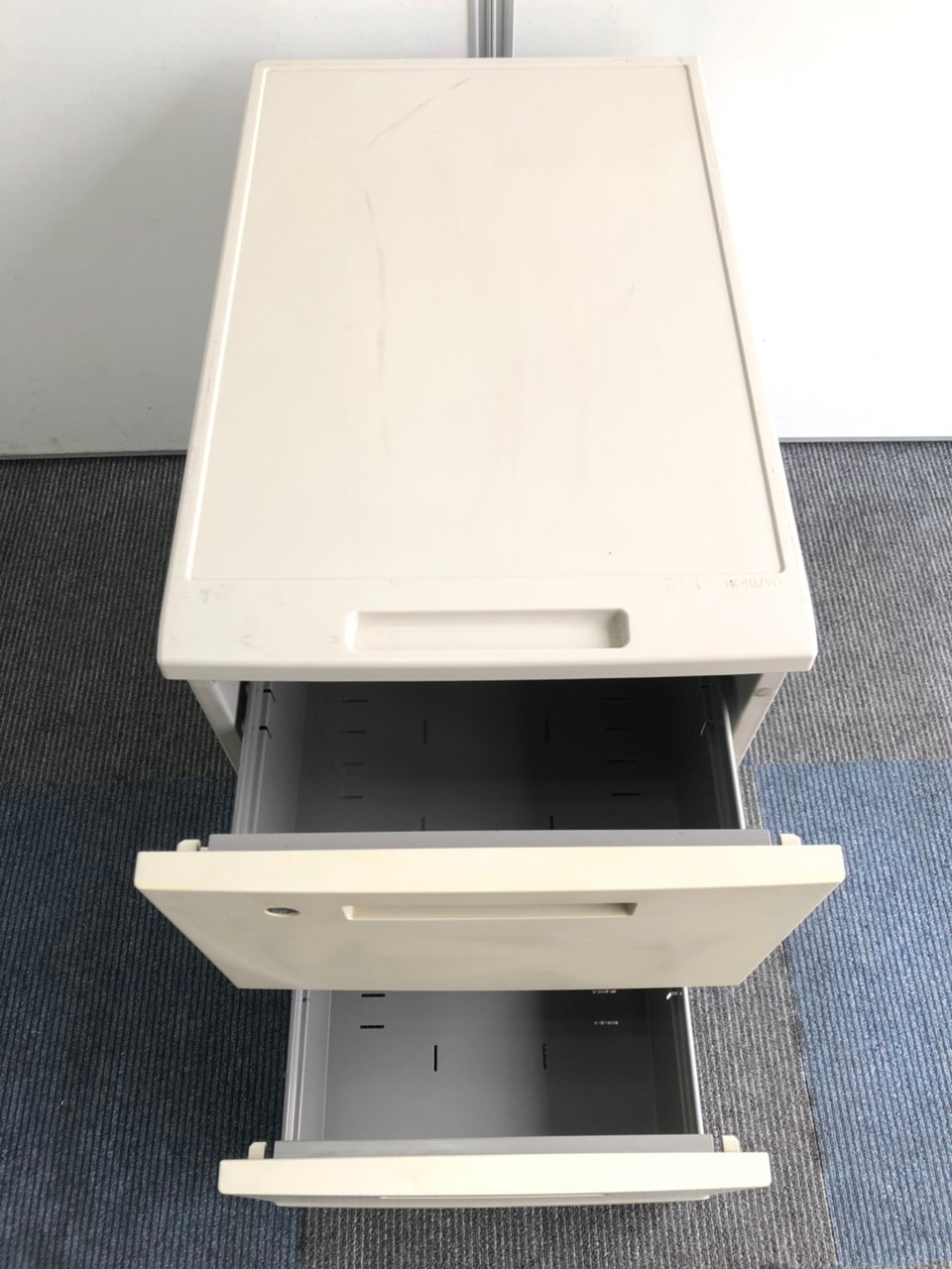- 一部不具合ありその脇机・ワゴンの本来の効用を果たすための機能以外の一部が使用不可な状態。(例、引出が開閉しづらい、 キャスターロック機能使用不可、ラッチ不良 等がある。)