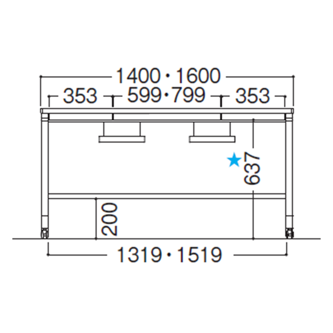 *引き出しなしのタイプで画像の★の寸法は675mmです。
