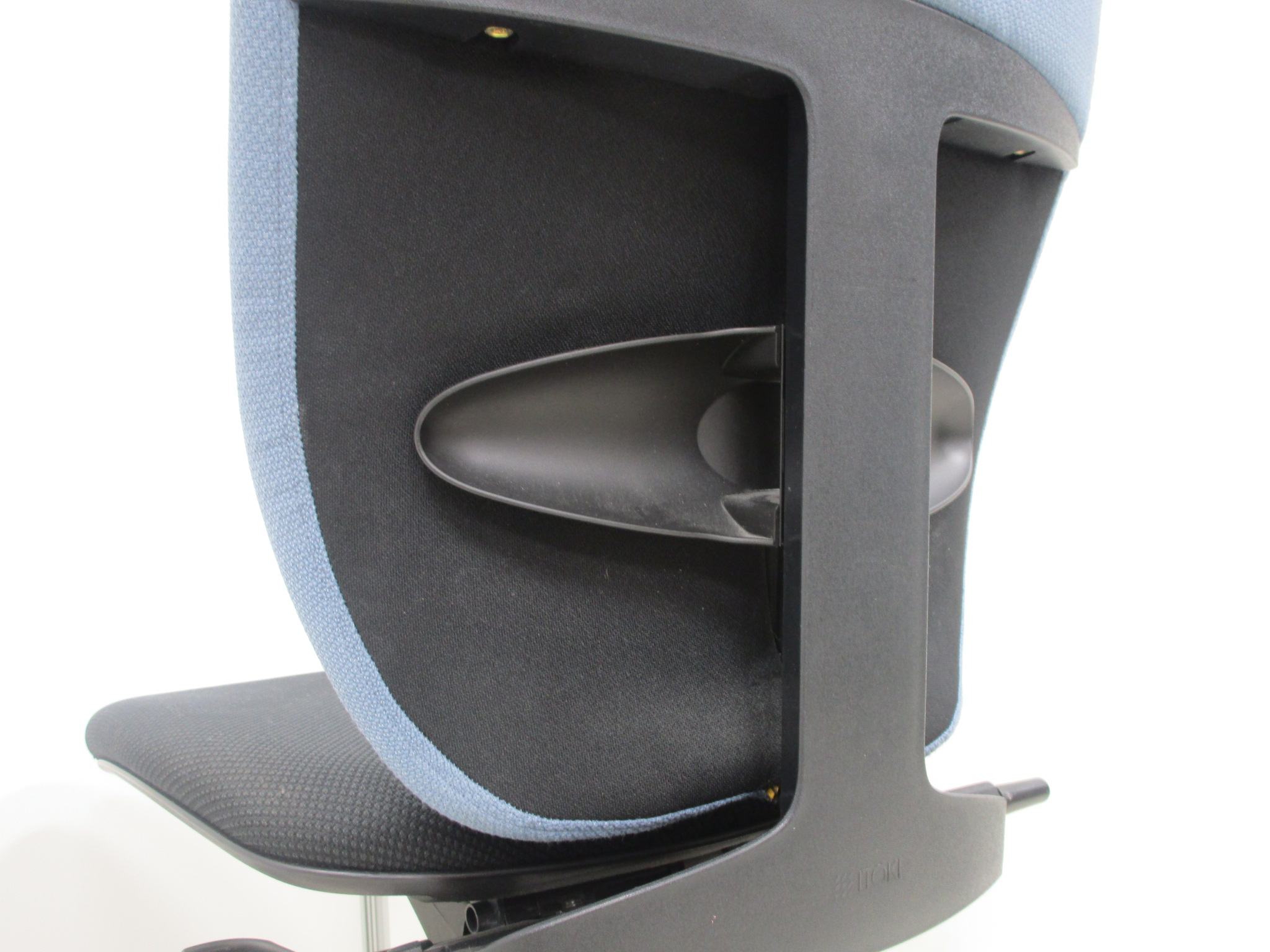 例えば、座面は、イトーキ独自の"ベンディングシート"という機構により、クッション、インターシェル、空洞という三層構造になっています。 この真ん中に挟まっているインナーシェルが、着座時の姿勢に合わせて体重を分散してくれるので、どんな姿勢でも体になじみ、疲労を軽減してくれます。 さらに、座面は前後に4センチほど奥行きを調整でき、前傾姿勢で座りたい、深く腰掛けたい、膝裏を圧迫されたくないなど、個人の好みに合った快適さにカスタマイズが可能となっています。