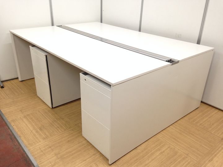 【W2000のコンパクトな4名サイズ】ホワイト天板がオフィスの雰囲気を向上させます! 【フリーアドレスデスク】【おつとめ品】- 名古屋本店