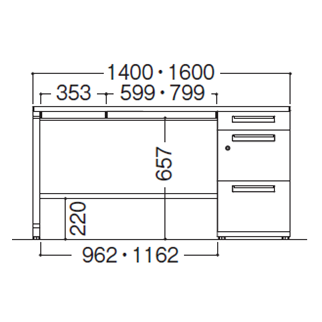【イナバの技術が詰め込まれたスタンダードなオフィスデスク!収納も充実で使いやすい!】■イナバ(Inaba)製 デュエナシリーズ 片袖机 W1400×D700㎜ ■ホワイト ■シリンダー鍵 ※日焼け有