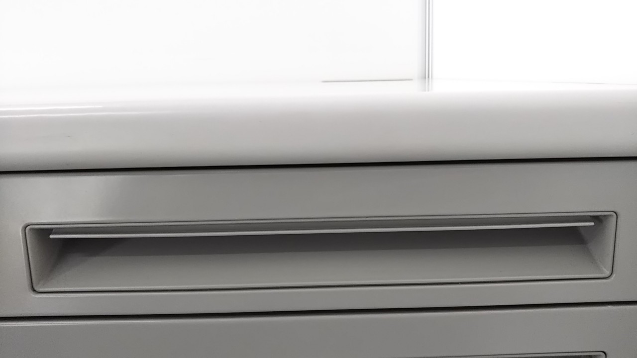 - シンプルながらも使いやすい工夫があります。ロックは、一度の施錠ですべての引出しの鍵がかかるオールロック機構。