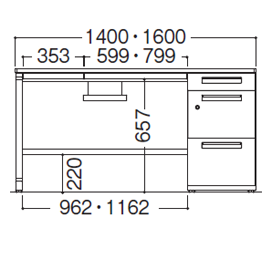 【片袖机、L型脚】【デュエナシリーズのDUS7-167-B3!】幅1600mmのコストパフォーマンスに優れたSタイプ!【ちょうどいい700mm高さ】