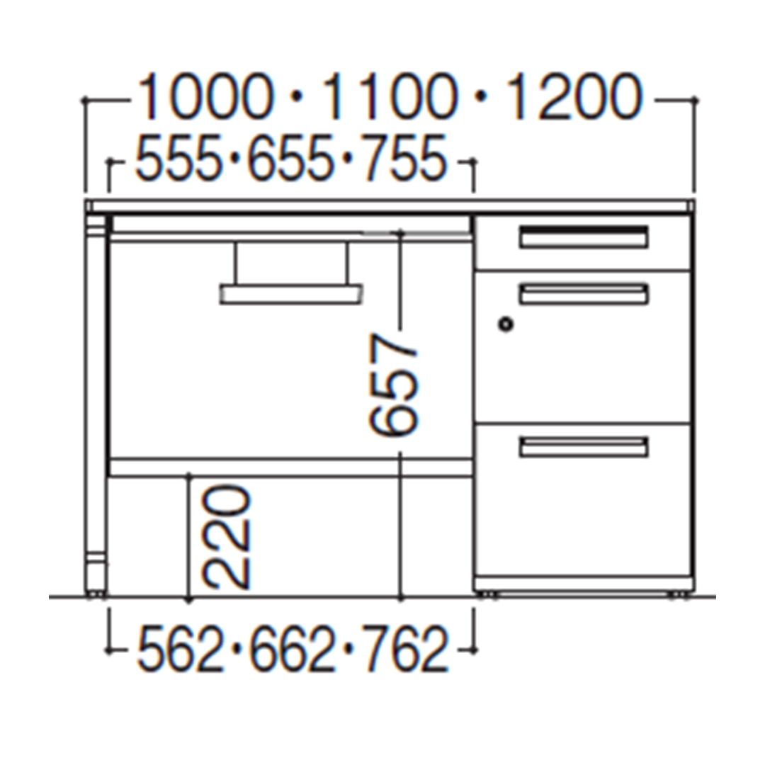 【片袖机、L型脚】【デュエナシリーズのDUS7-107-B3!】幅1000mmのコストパフォーマンスに優れたSタイプ!【ちょうどいい700mm高さ】