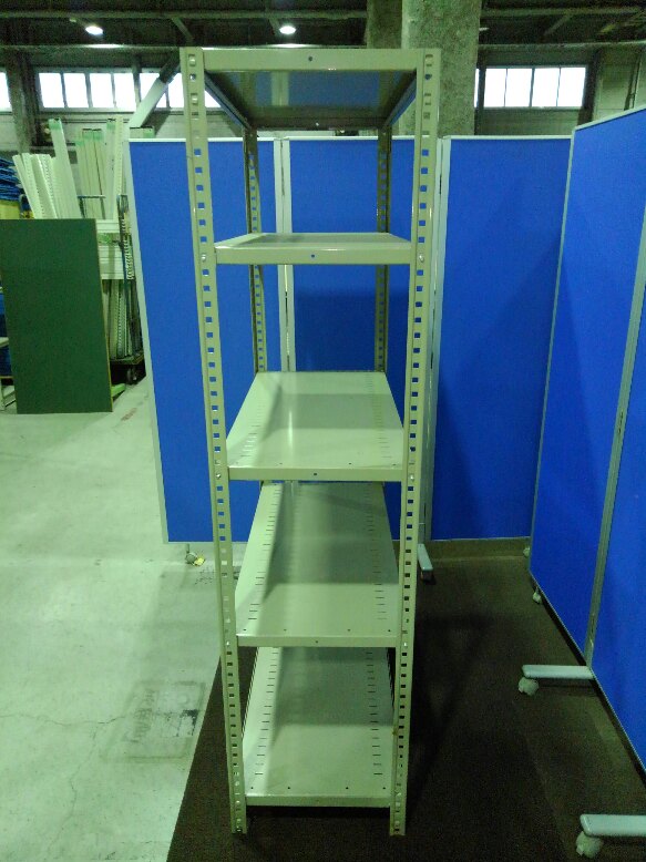 オカムラの珍しい色の中古ラックが1台入荷しました! 天地4段 耐荷重:段/100kg ボルトレスなので組立も簡単! 注)画像は天地5段ですが、実物は天地4段(1枚棚板が少ないもの)となりますので、ご注意下さい。 ※マテハン本舗の中古商品は、千葉県柏市に在庫がございます。- マテハン本舗