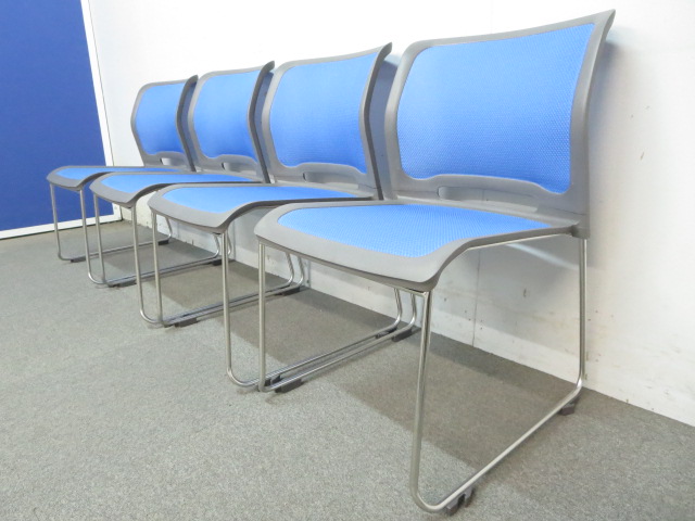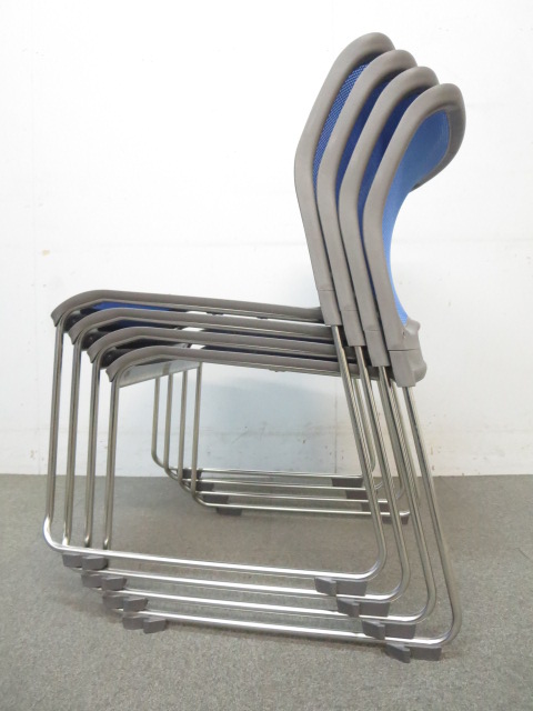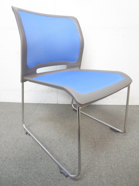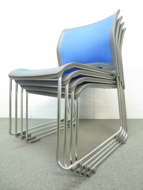 【三次元ネットが心地よさをキープ!】■コクヨ製 スタッキングチェア ブルー(背座メッシュ)- 川崎店