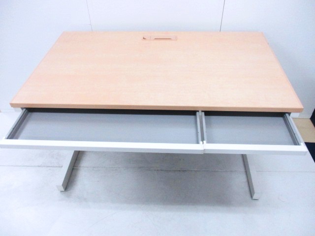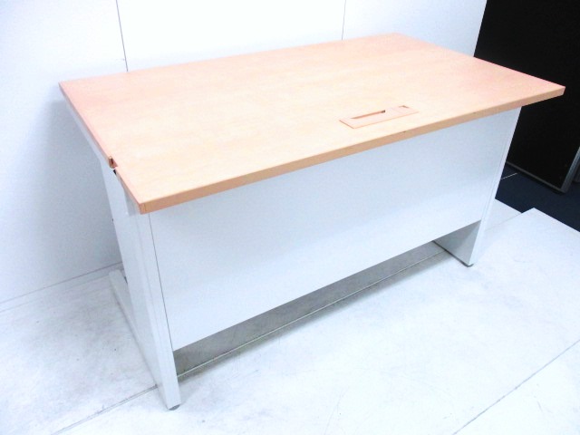 【在庫入替セール】【3台限定!】ウチダ製 スカエナシリーズ Kタイプ ナチュラル天板 W1200サイズ 平机 配線カバー 引出し付 おしゃれ