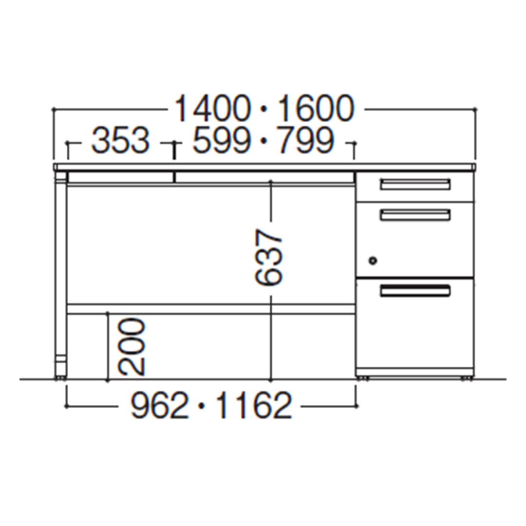 【片袖机、L型脚】【デュエナシリーズのDUS7-167-B3!】幅1600mmのコストパフォーマンスに優れたSタイプ!【ちょうどいい700mm高さ】- 全店共通商品