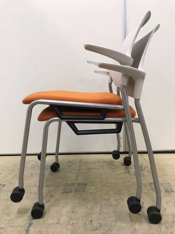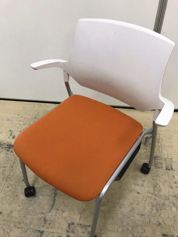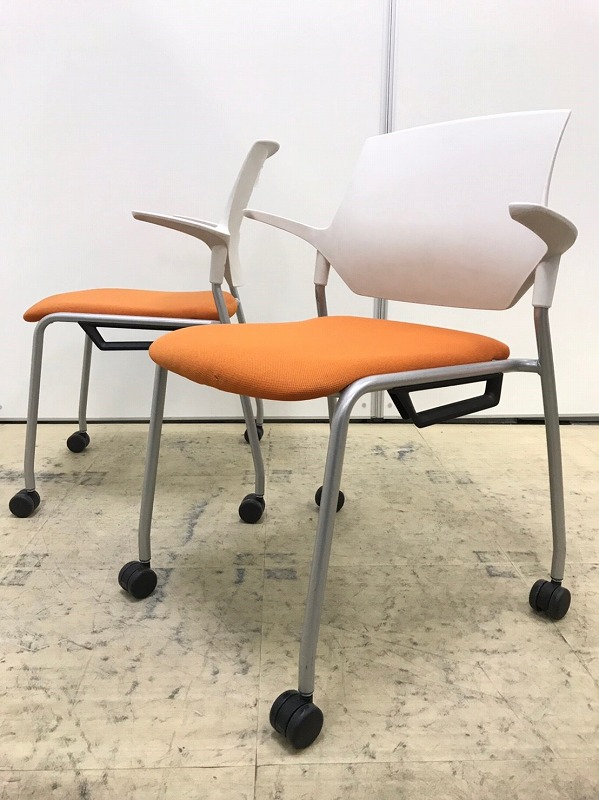 【2脚セット】イトーキ製 ミーティングチェア ステンザ オレンジで色がオフィスを明るくする商品です!- 大阪梅田本店