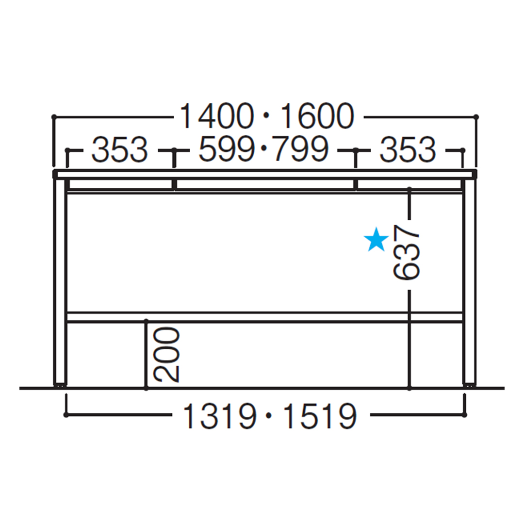 *引き出しなしのタイプで画像の★の寸法は675mmです。