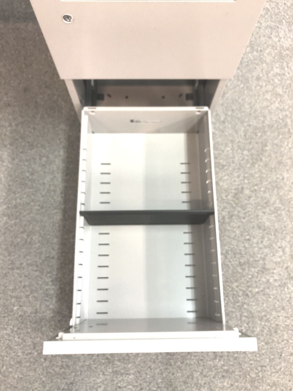 - シンプルながらも使いやすい工夫があります。ロックは、一度の施錠ですべての引出しの鍵がかかるオールロック機構。