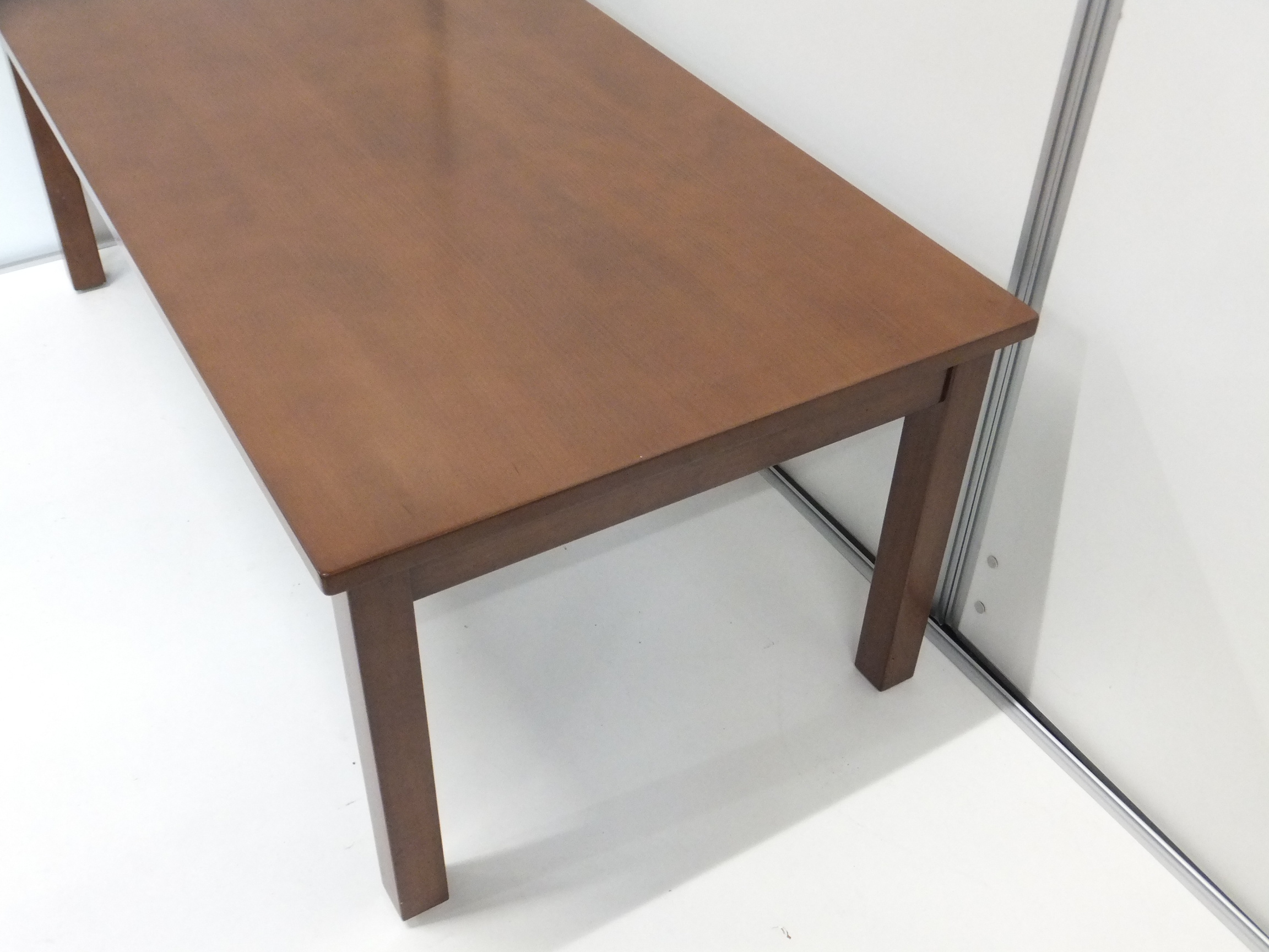 - 一部不具合あり天板歪み、アジャスター無し、キャスター使用不可ようなそのテーブルの本来の効用を果たすための機能以外の一部が使用不可な状態。(例、キャスターロッ ク機能使用不可、棚板無し等がある。)
