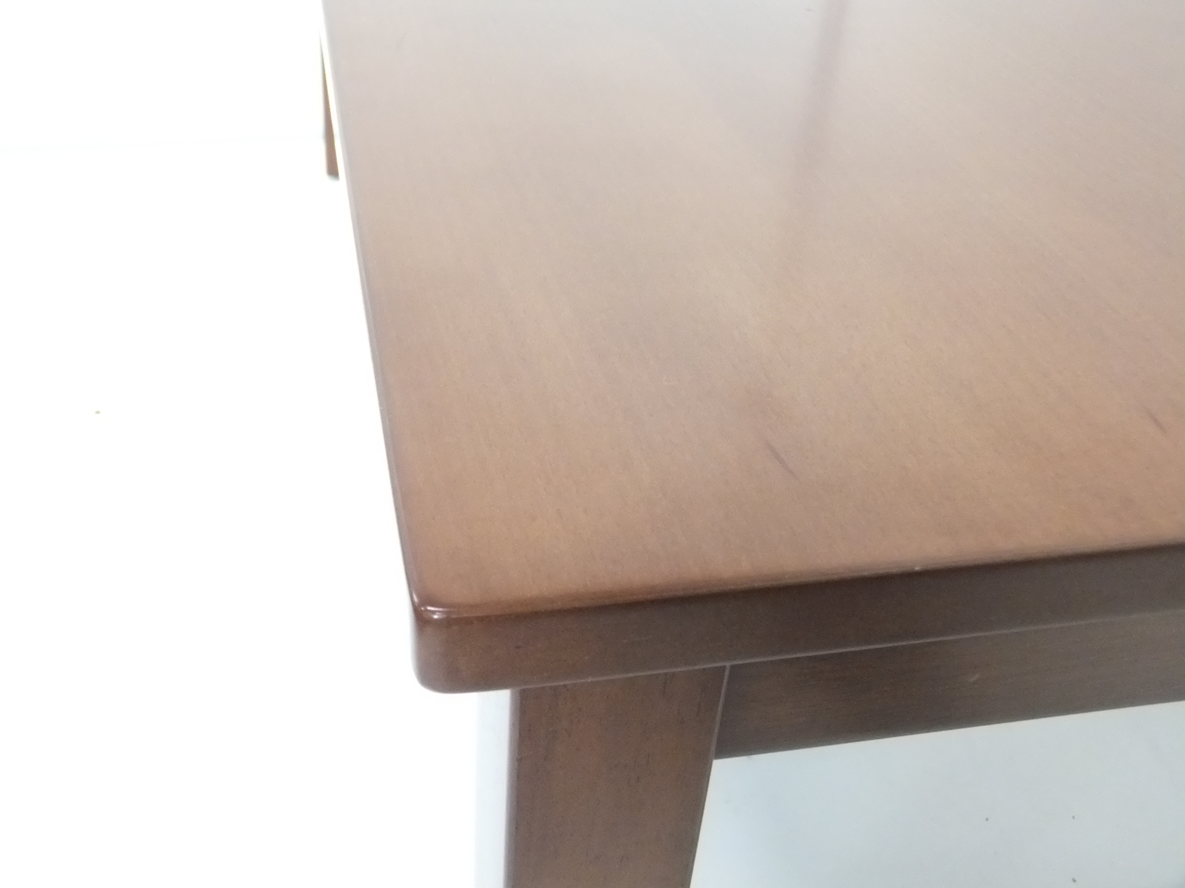 - かなり強い濃い黄ばみ・変色が商品全体にある。(例、天板、幕板、棚板、サイド部分、脚部等にある。)