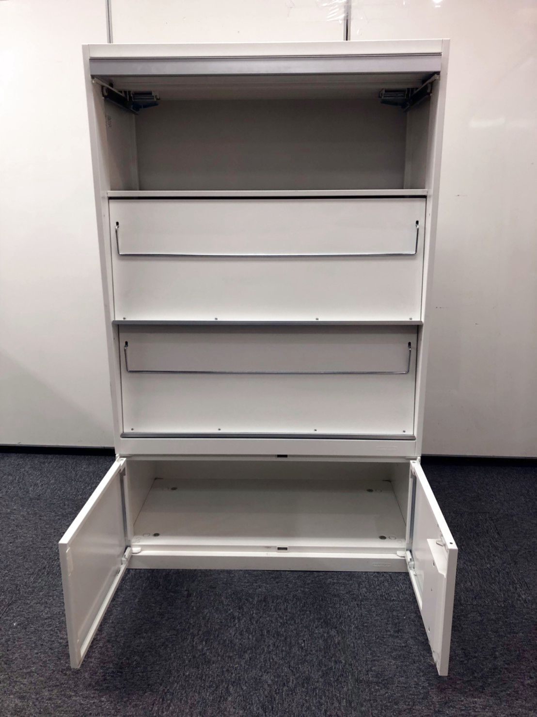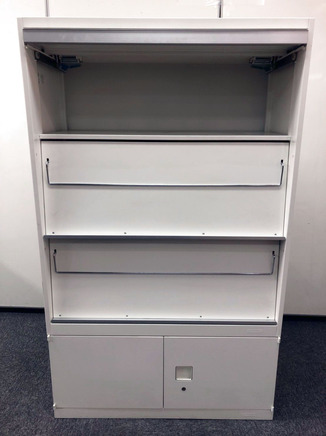 【分別に便利な組み合わせ☆両開き+クリスタルトレー】オカムラ製 レクトライン 両開き クリスタルトレー 収納 ローキャビネット 書庫 組み合わせ 中古 福岡 博多 天神 九州最大級《オフィスバスターズ福岡博多店は、福岡を拠点として、日本全国へ中古オフィス用品・オフィス家具を提供しております》