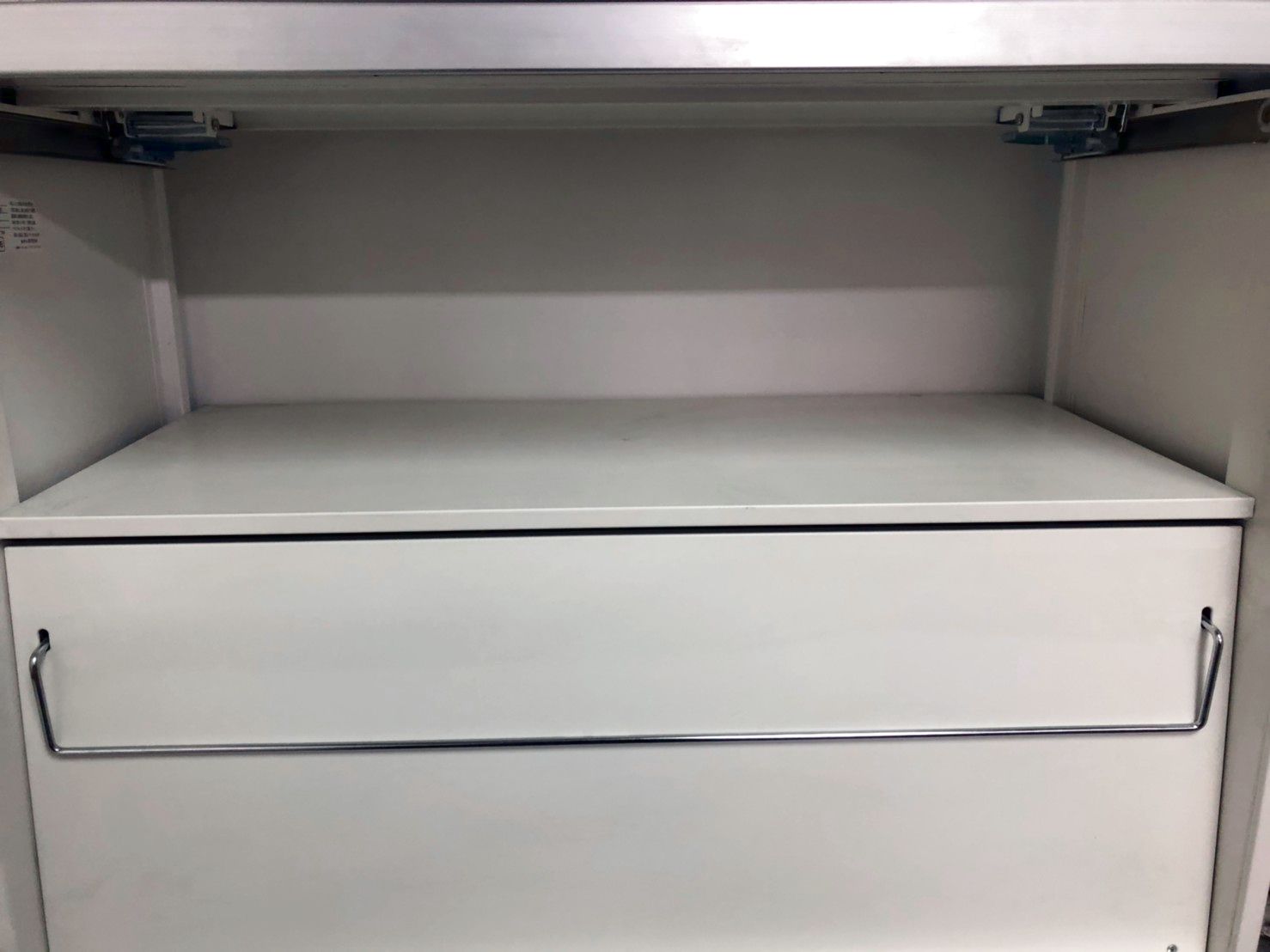 - 一部不具合ありそ引出の開閉不可、施錠不可、棚板無しといったの書庫の本来の効用を果たすための機能以外の一部が使用不可(例、扉、引出の開閉がしづらいなどがある。 )