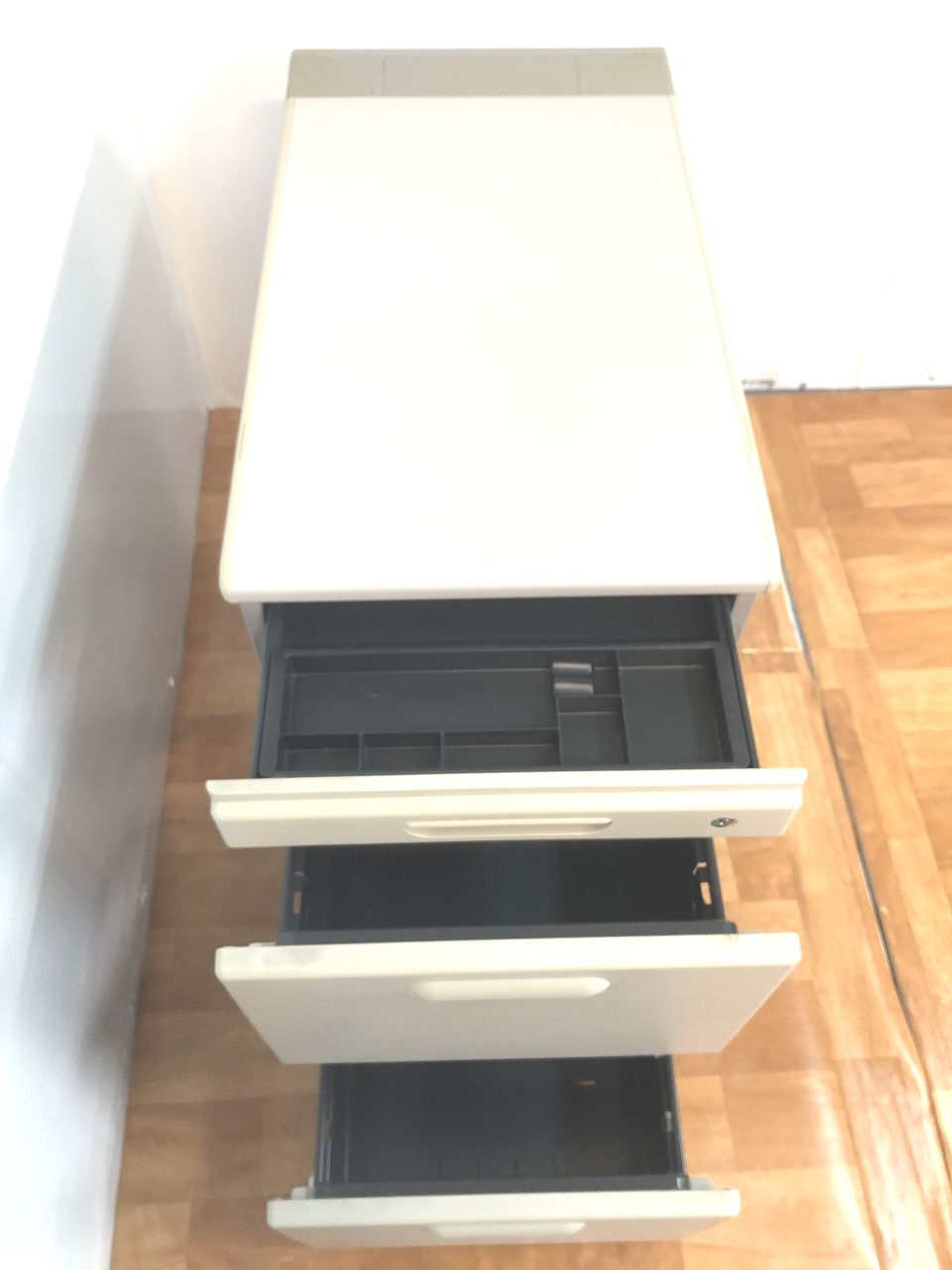 - 一部不具合ありその脇机・ワゴンの本来の効用を果たすための機能以外の一部が使用不可な状態。(例、引出が開閉しづらい、 キャスターロック機能使用不可、ラッチ不良 等がある。)