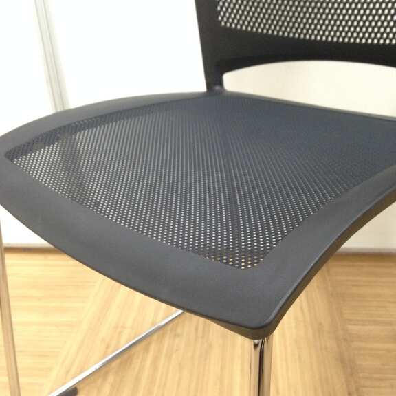 シェル部分は樹脂、着座部分はメッシュ生地で作られており、