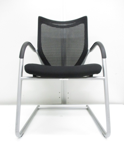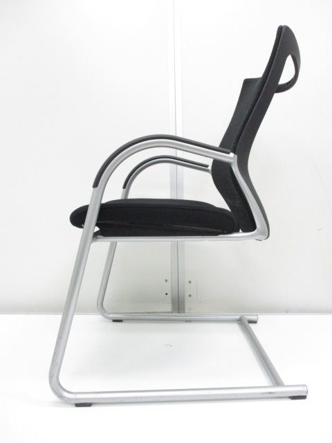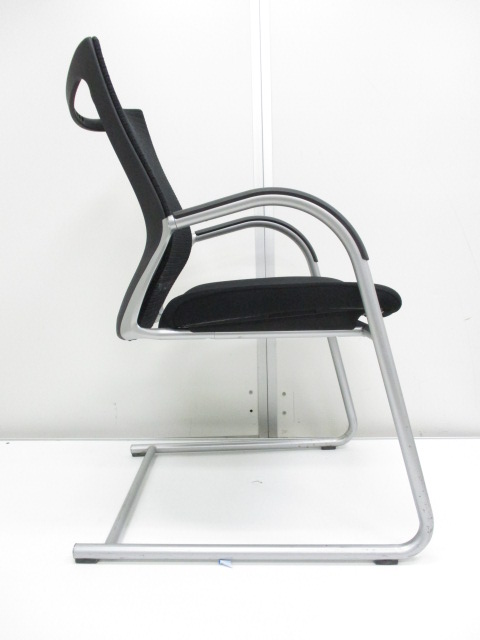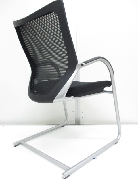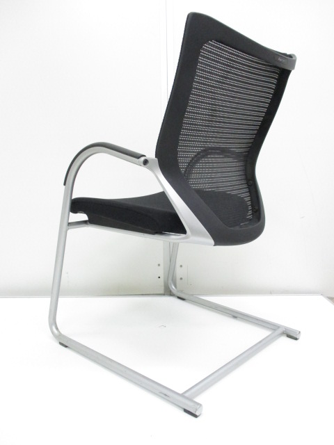 【在庫入替セール】オカムラ バロン ゲストチェア(ミーティングチェア) 背メッシュ×座クッション カンチレバー脚 ブラック×クロームメッキ