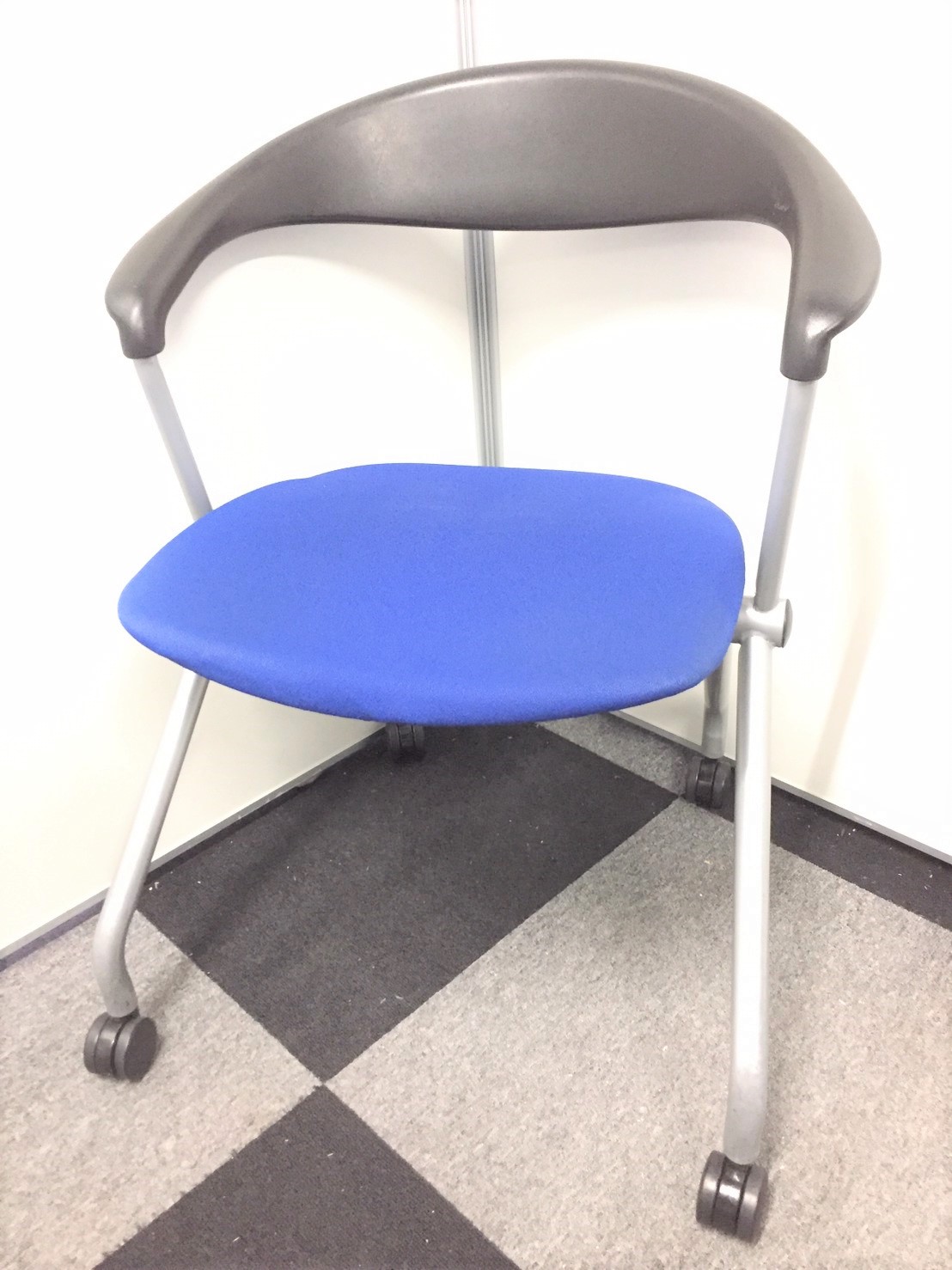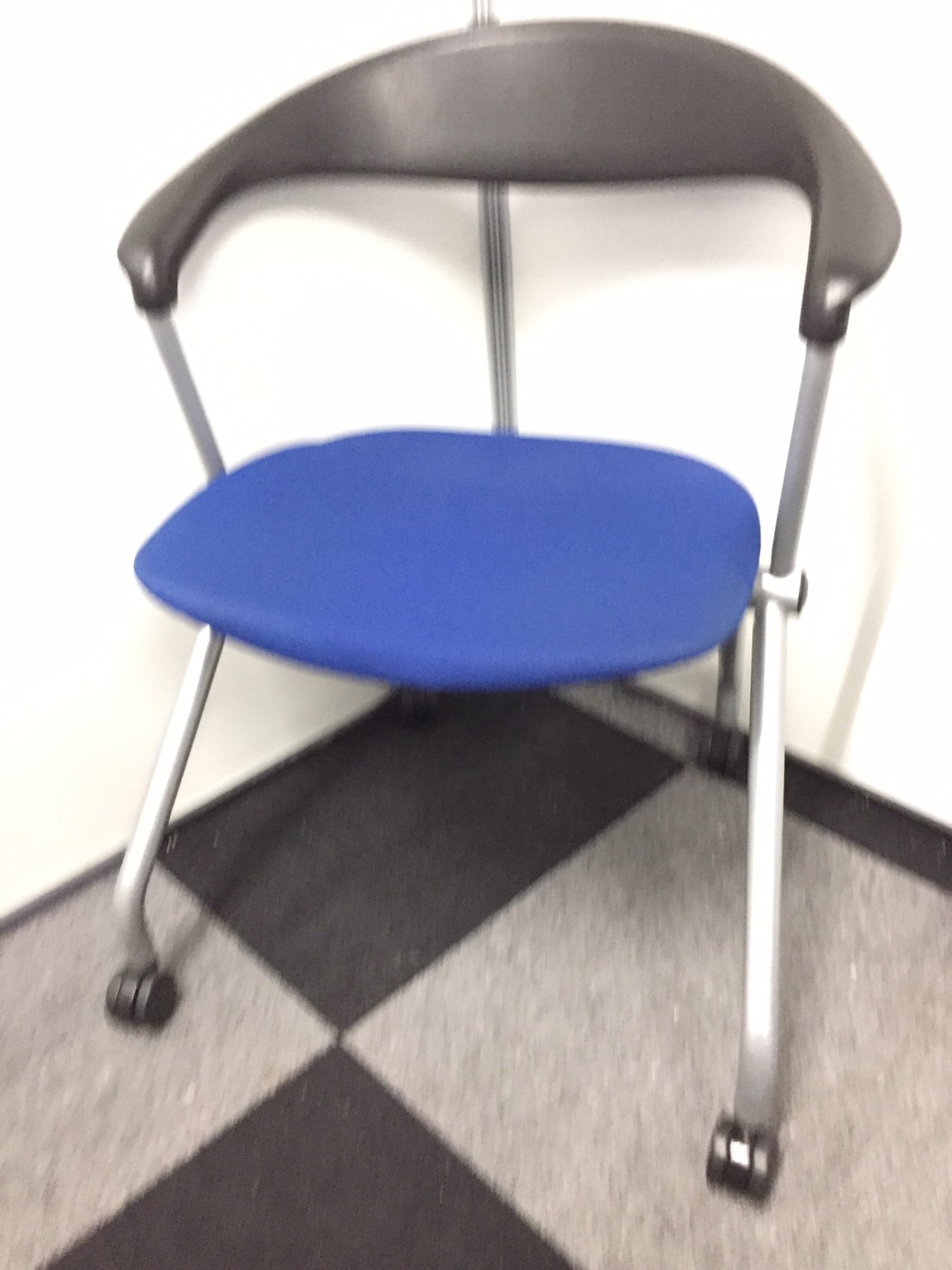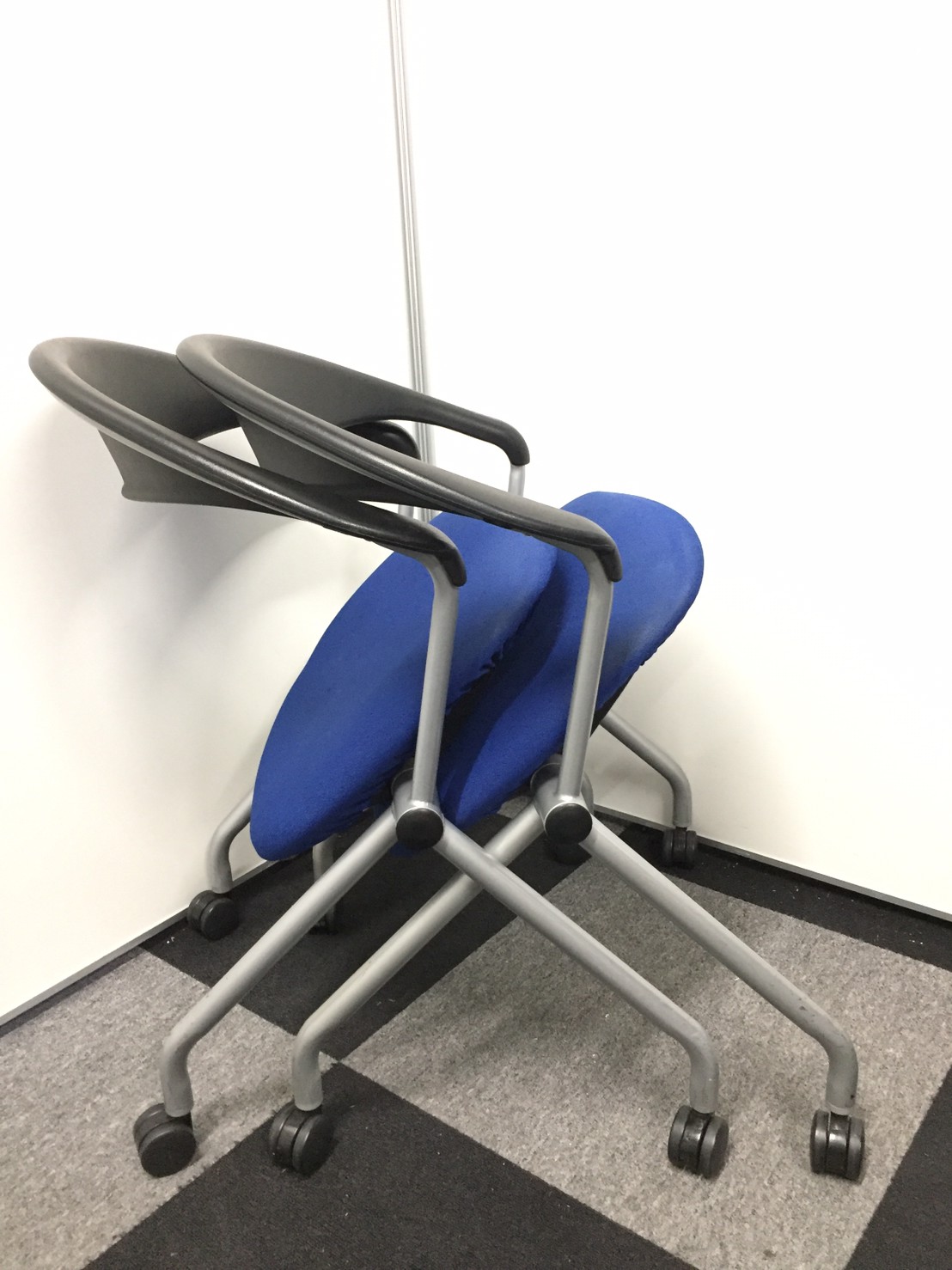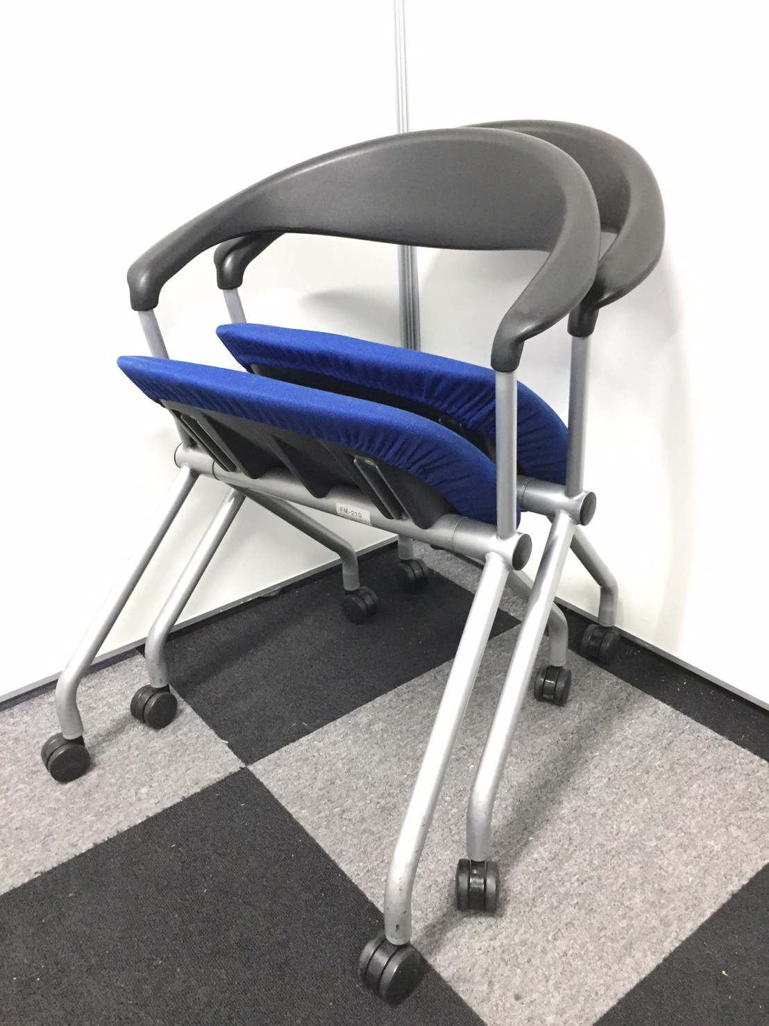 【重ねて収納可能、キャスター付きで移動も楽々!】内田洋行製 ネスティングチェア 定番のブルーカラー- 在庫数