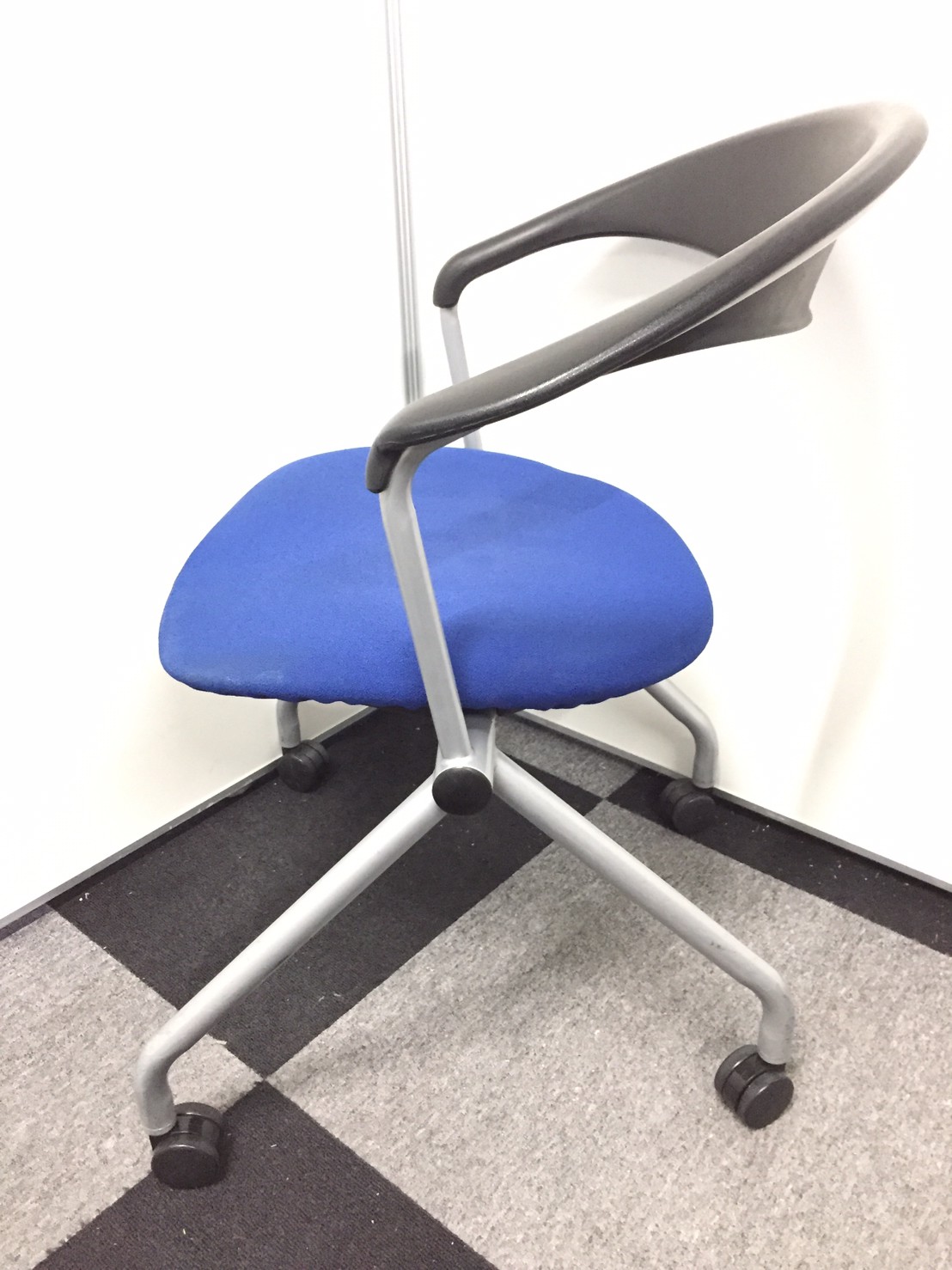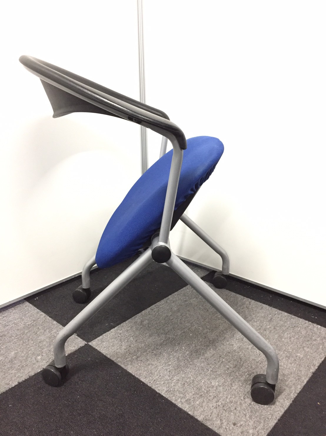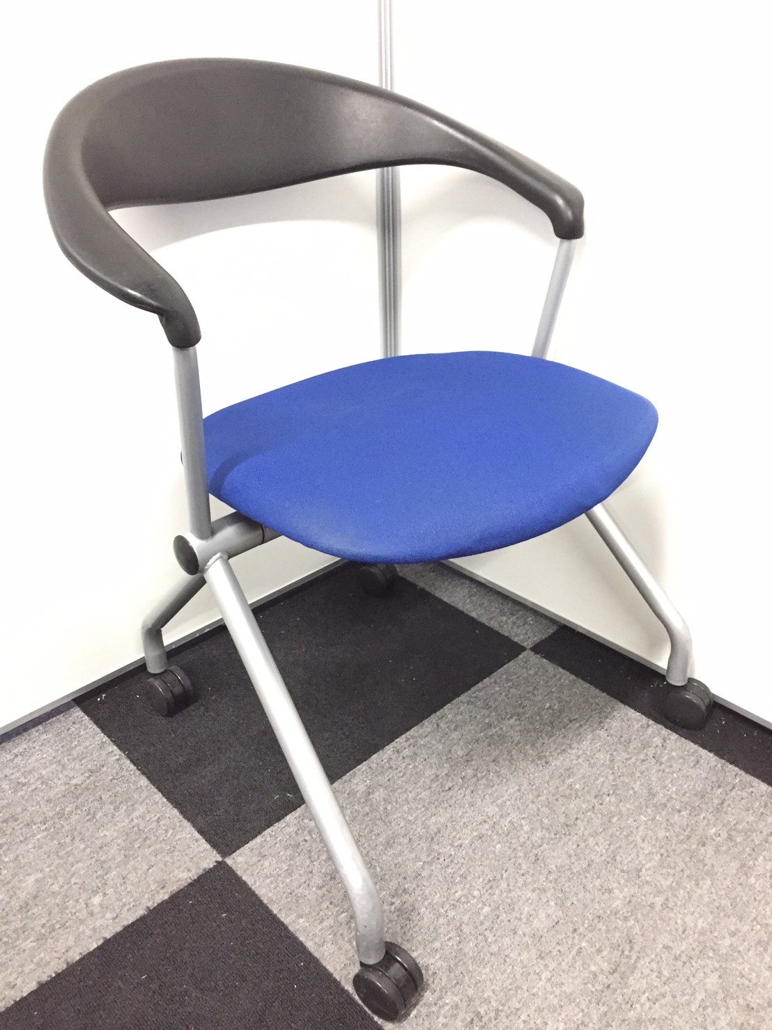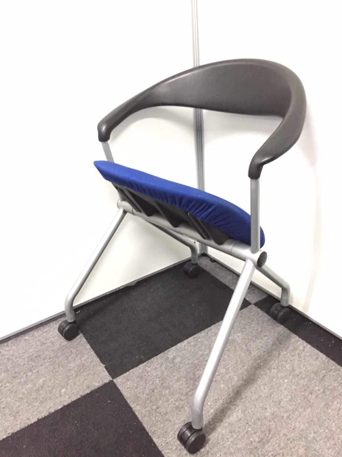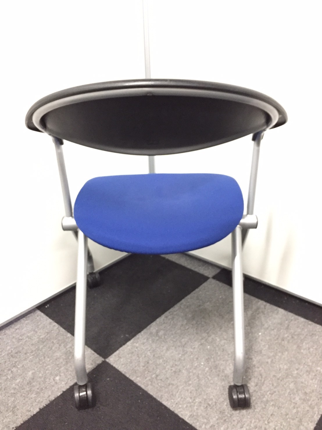 【重ねて収納可能、キャスター付きで移動も楽々!】内田洋行製 ネスティングチェア 定番のブルーカラー- 在庫数
