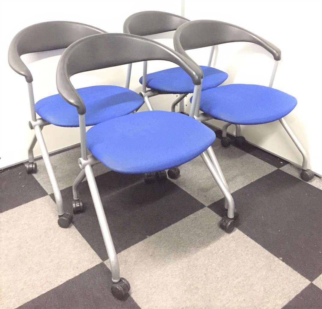 【4脚セット販売で何と10%OFF!】研修やミーティングルームで大活躍の国産ネスティングチェアです!- 在庫数