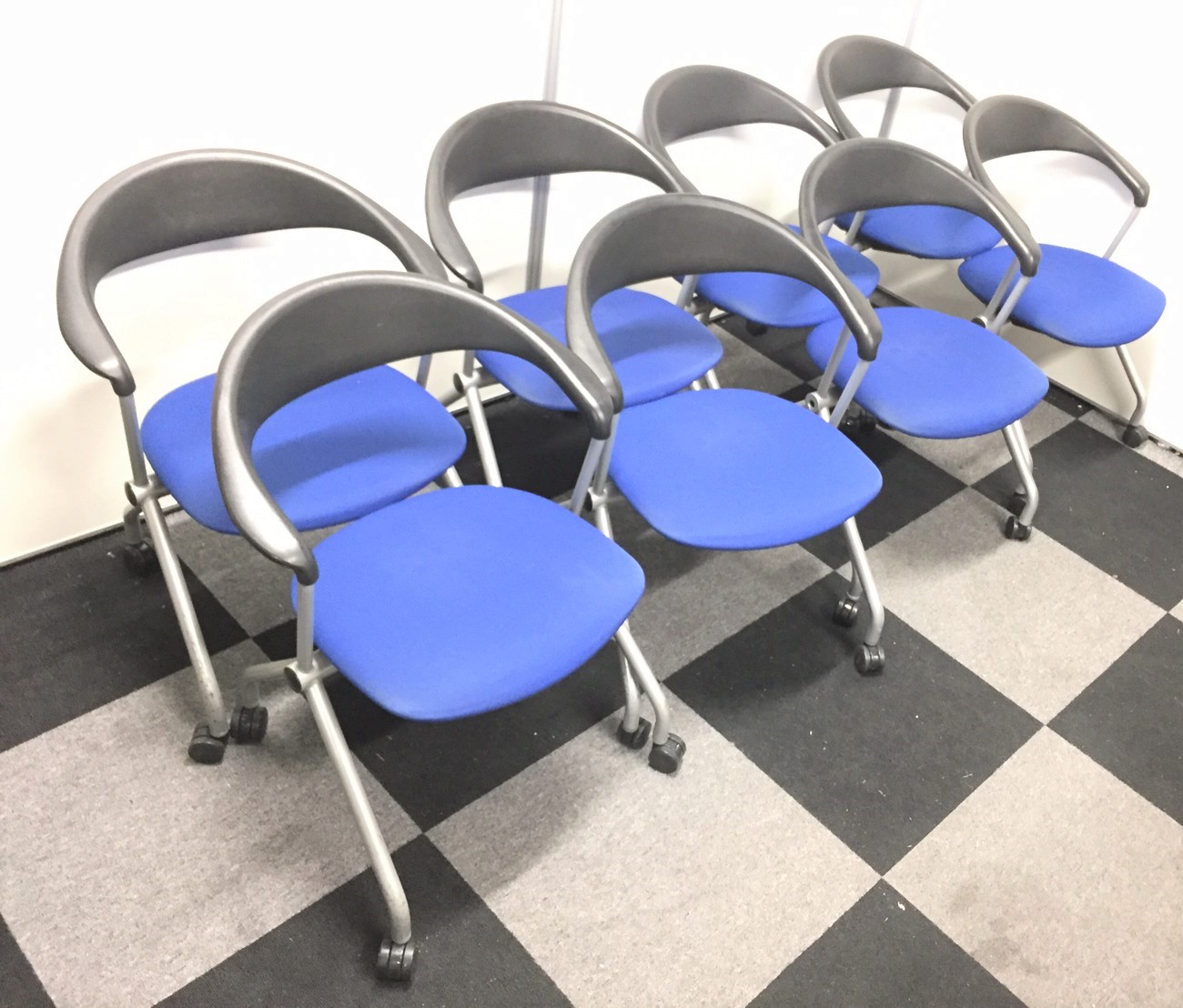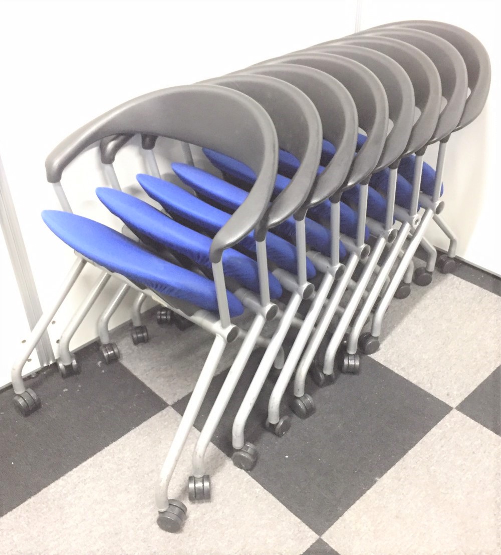 【8脚セットで驚異の15%OFF!】内田洋行製 ネスティングチェア 人気のブルーカラーです!- 在庫数