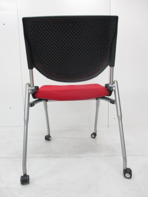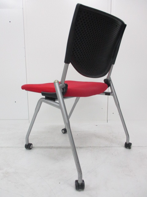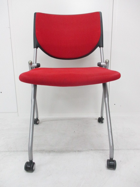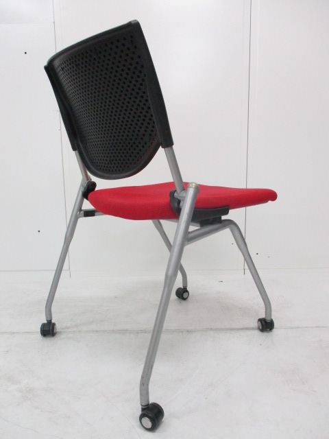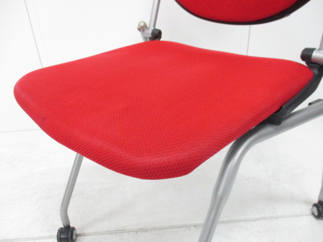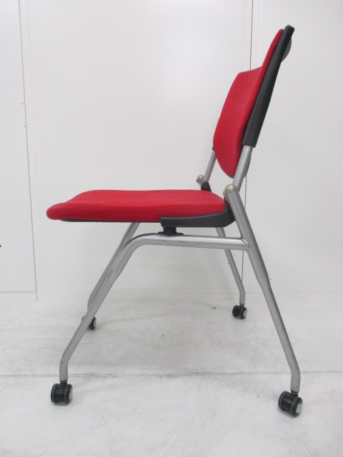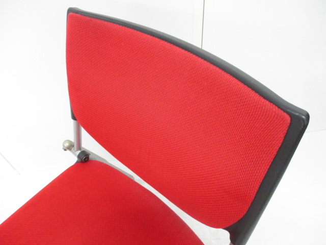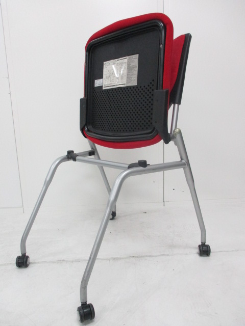 【赤いネスティングチェア!!】キャスター付きで収納可能!■背パット付- 足立・葛飾店