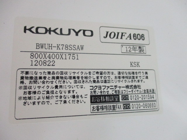 【中古】 エディア BWUH-K78SSAW コクヨ/KOKUYO ローキャビネット/オープン 251610